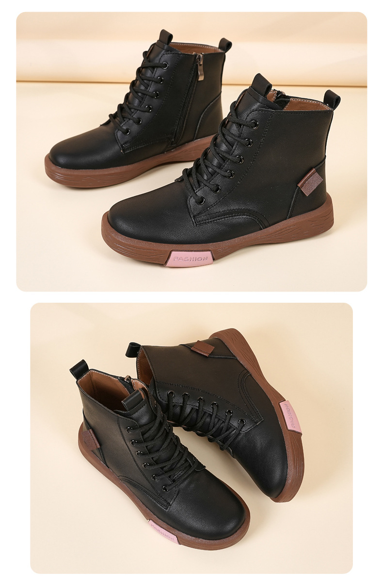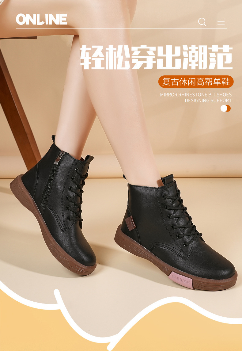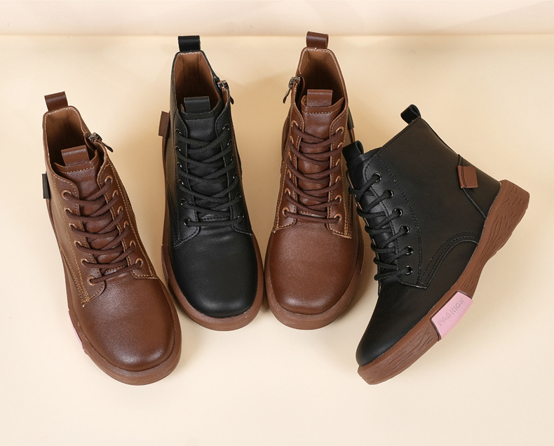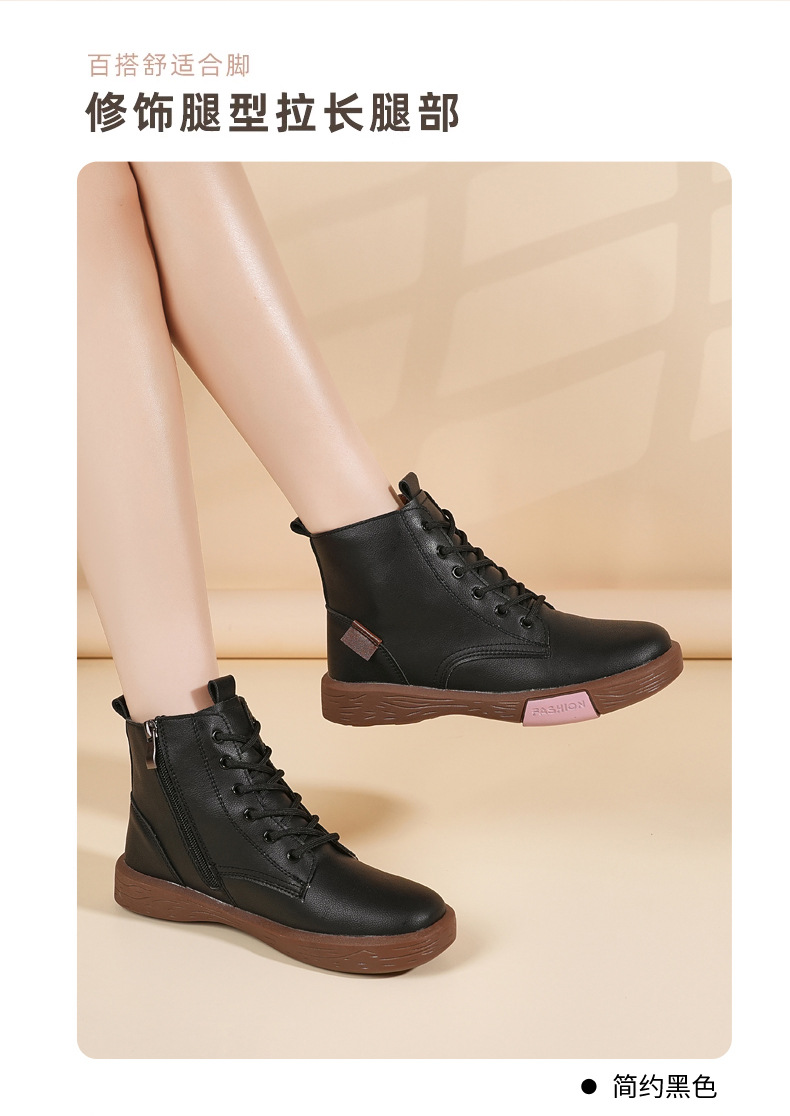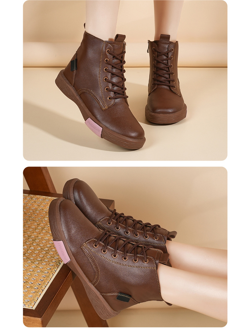 Otoño de 2025 nuevos zapatos de cuero de vaca británicos redondos con suela gruesa y suave con suela de goma profunda zapatos de tubo medio