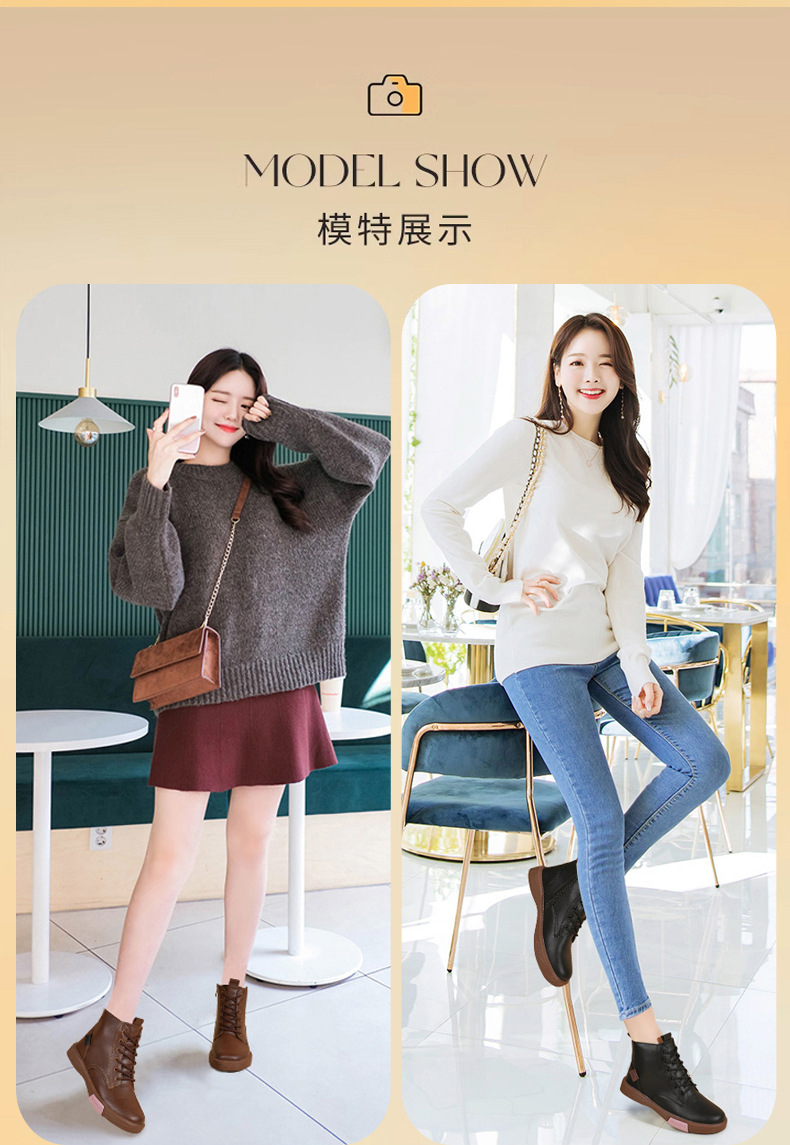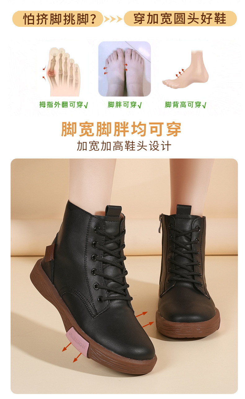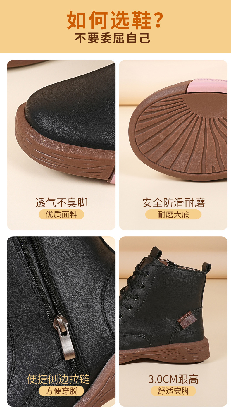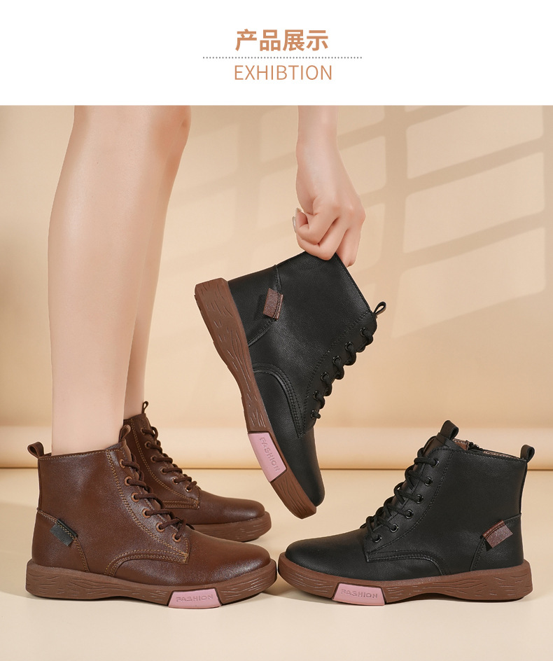 Otoño de 2025 nuevos zapatos de cuero de vaca británicos redondos con suela gruesa y suave con suela de goma profunda zapatos de tubo medio