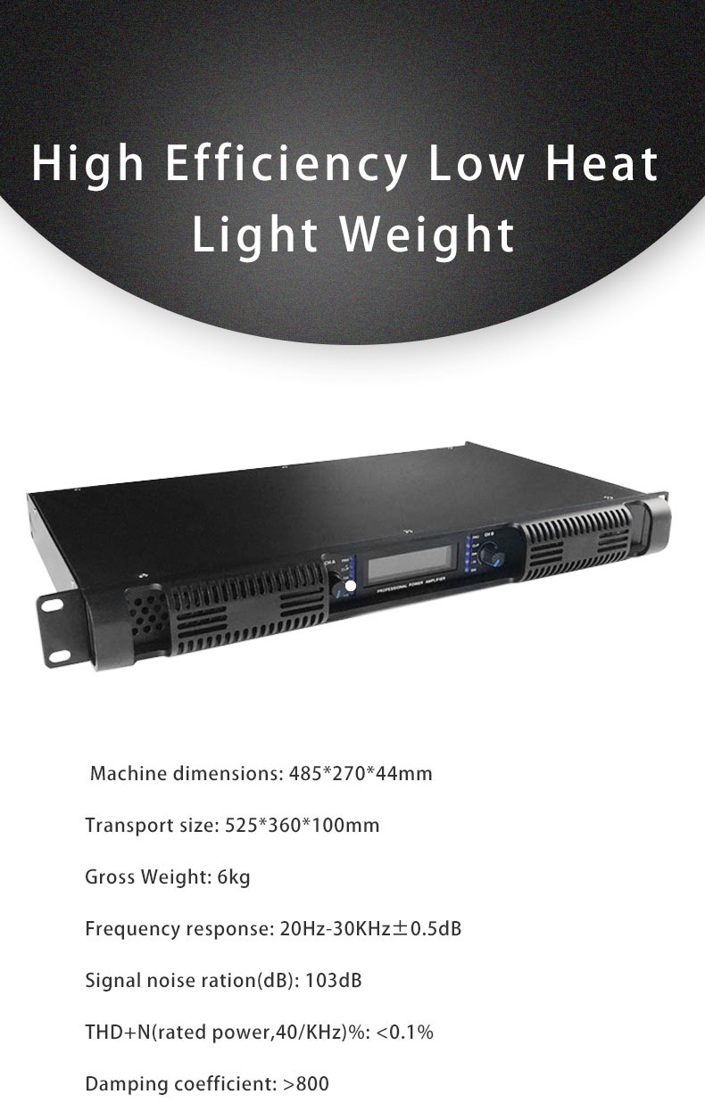 Fábrica GAP-XS1000 suministra amplificador de potencia de clase D de 1500W * 2 1U para KTV de espectáculo de escenario