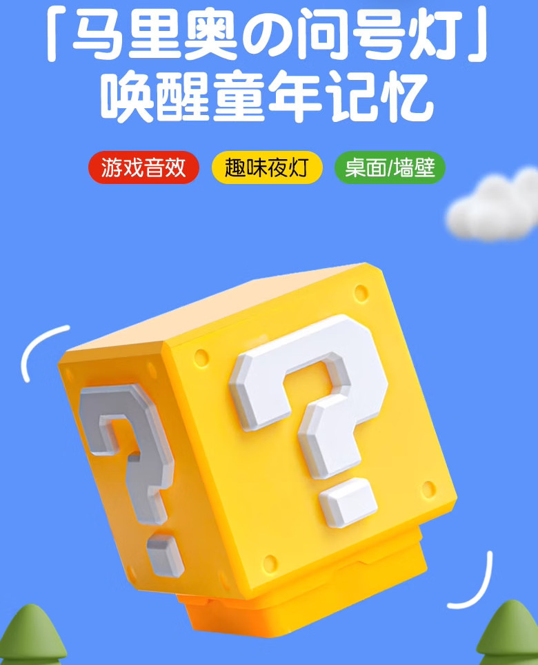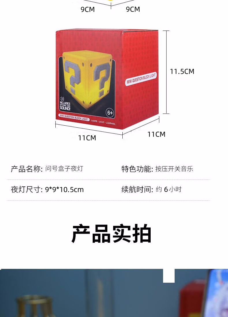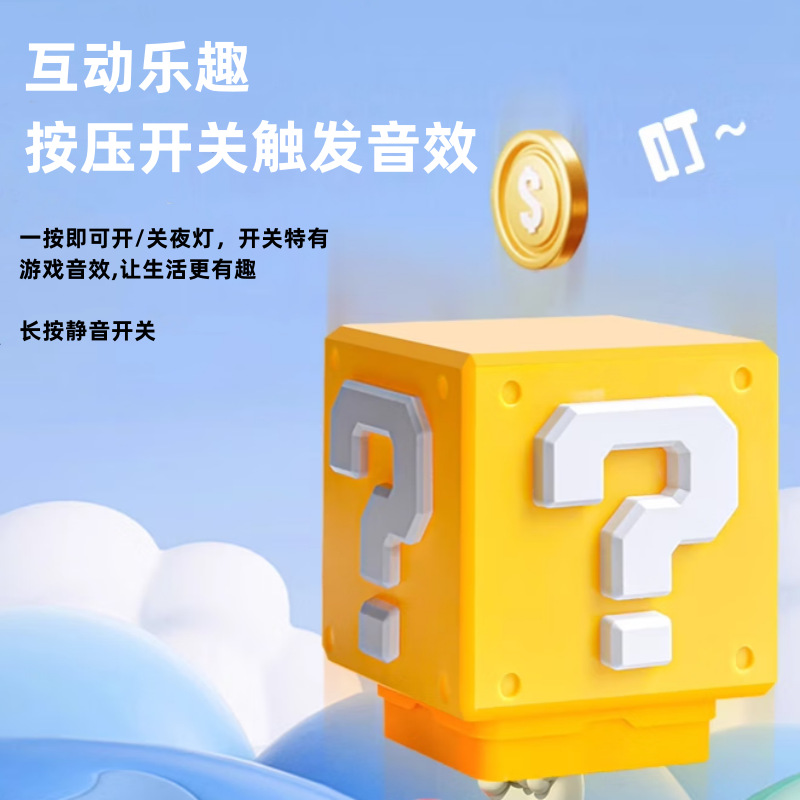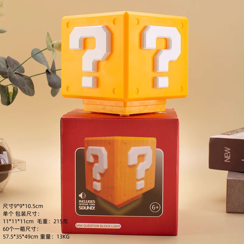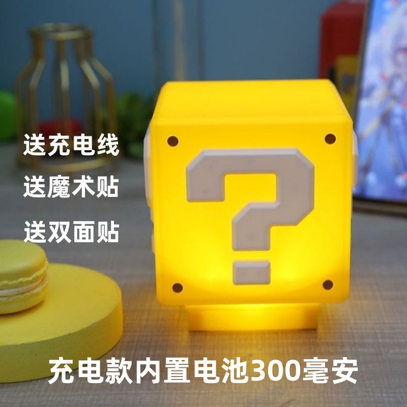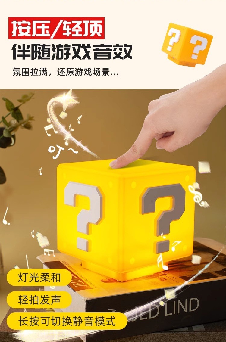 Super Mario luz nocturna LED interrogación luces de presión cuadrada efectos de sonido de escritorio luces de atmósfera creativas luz nocturna