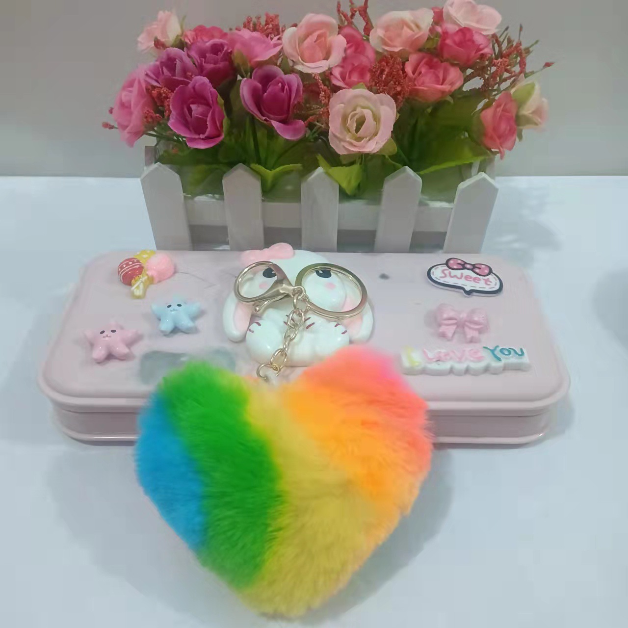 Moda de peluche amor llavero colgante bola de peluche joyería bolsas colgante fábrica al por mayor