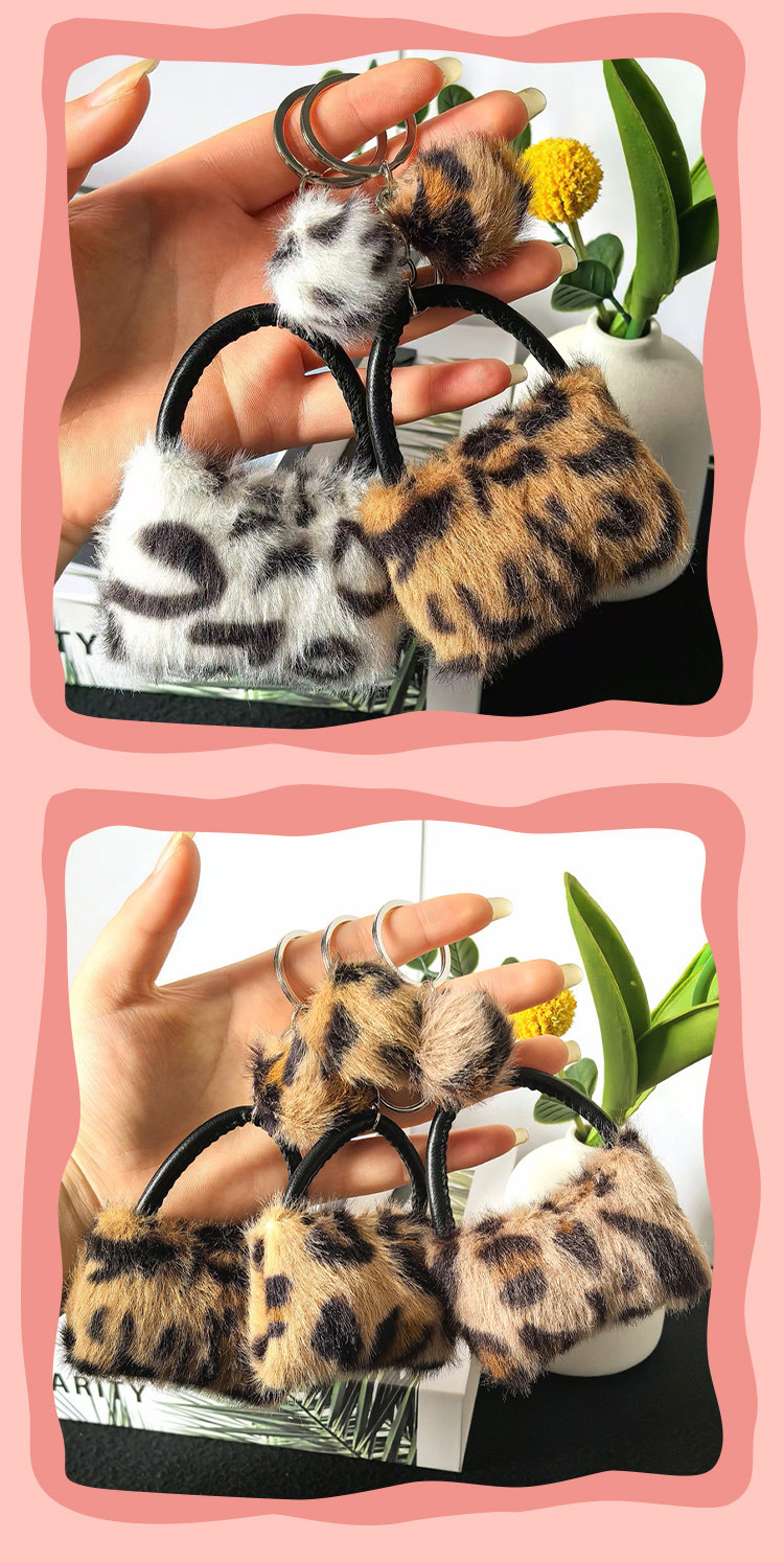 Leopardo bolso de peluche llavero de dibujos animados creativos accesorios bolso accesorios de peluche bola accesorios colgante llavero de coche