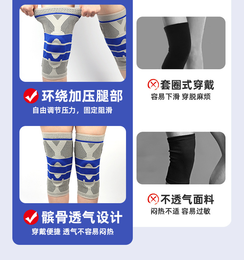 rodilla de silicona anticolisión deportiva spring support running mountain climbing equitación fitness jersey nylon rodilla protector