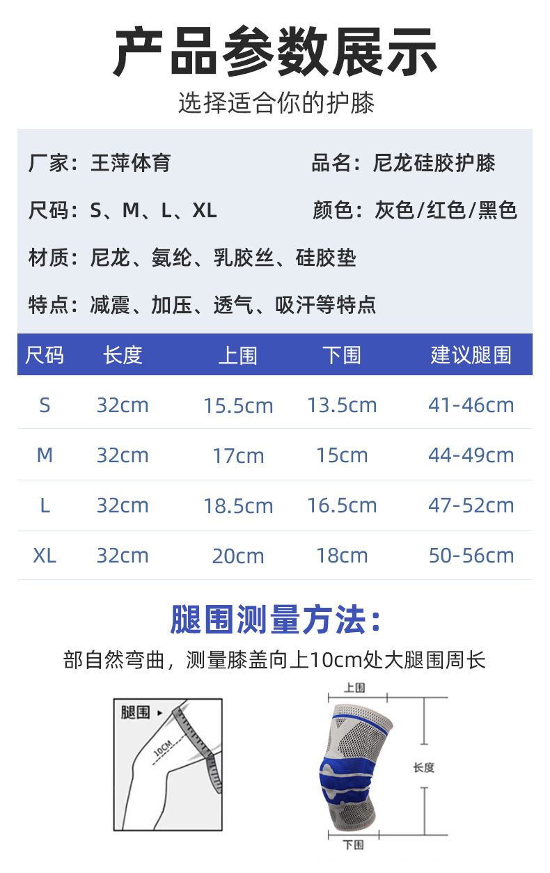 (un solo) gris [XL] nylon de silicona soporte de rodillas de resorte