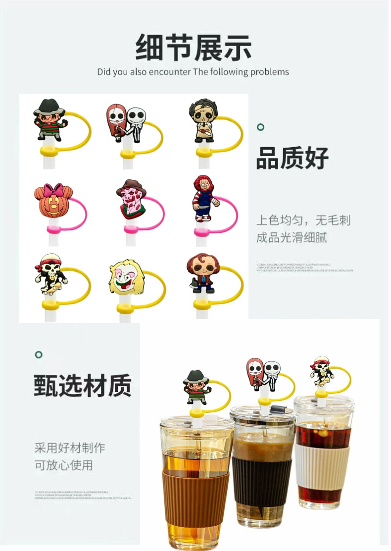 Capas de paja de Halloween transfronterizas reutilizables cubierta de paja de silicona tapones de polvo de paja decoración gran precio