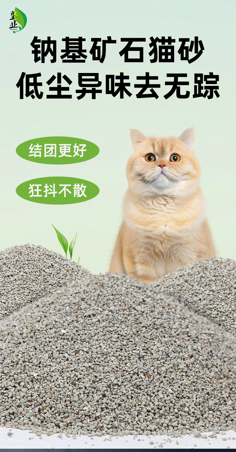 Arena de gato mineral a base de sodio 10kg 20kg empaquetado postal limpio sabor absorción de agua aglomerado compacto no fácil de dispersar arena de gato mineral