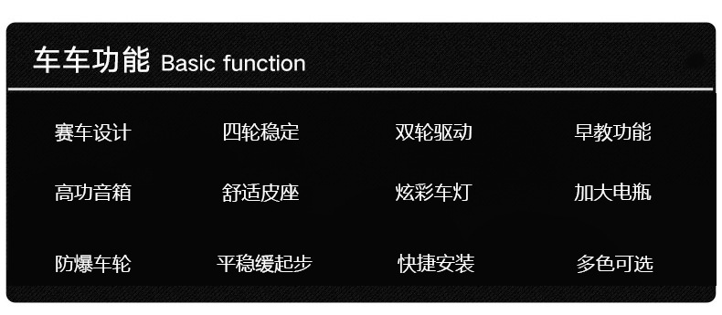 | Color | Acelerador de doble pedal de accionamiento amarillo + música Bluetooth + rueda de flash,Acelerador de pedal de Doble accionamiento rojo + música Bluetooth + flash,Acelerador de pedal de Doble accionamiento blanco + música Bluetooth + flash,Azul Doble accionamiento pedal acelerador + música Bluetooth + flash,Amarillo doble manejo de la manija + 12V7A Chaowei batería + asiento de cuero,Rojo doble mango acelerador + 12V7A Chaowei batería + asiento de cuero,Blanco doble mango acelerador + 12V7A Chaowei batería + asiento de cuero,Azul doble mango acelerador + 12V7A Chaowei batería + asiento de cuero,Amarillo doble manejo de la manija + 12V12A Super Wei batería + asiento de cuero + neumático suave,Rojo doble mango acelerador + 12V12A Super Wei batería + asiento de cuero + neumático blando,Blanco Doble accionamiento del acelerador + 12V12A Super Wei batería + asiento de cuero + neumático blando,Azul doble manejo de la manija + 12V12A Super Wei batería + asiento de cuero + neumático suave |