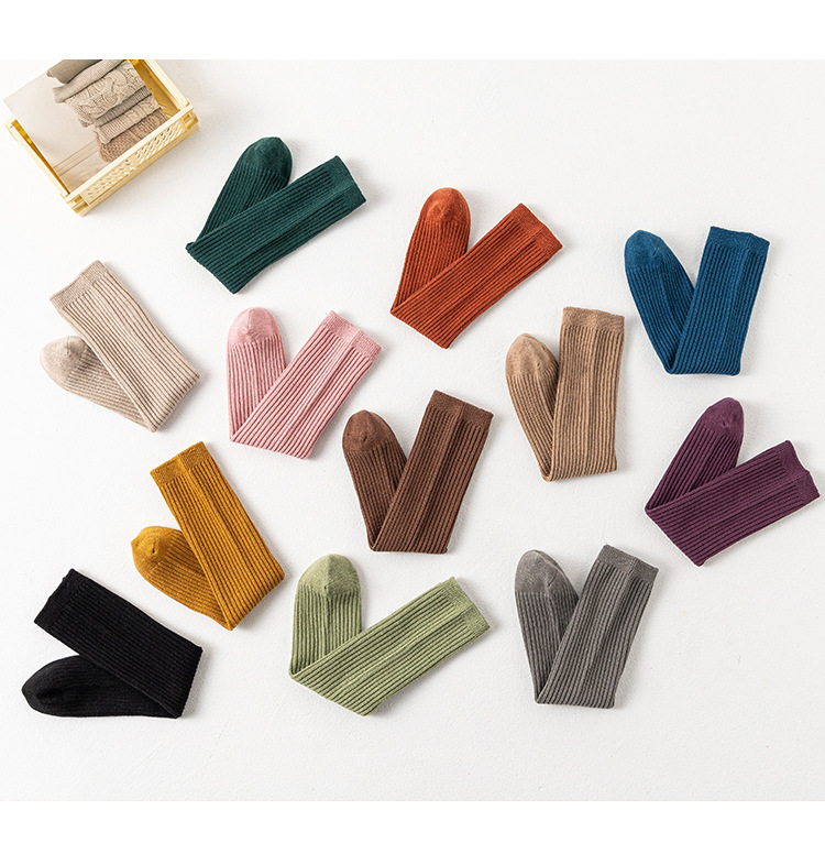 Calcetines de baile infantiles de colores brillantes, calcetines largos de color sólido para niños y niñas, calcetines hasta la pantorrilla de doble aguja, calcetines largos rectos al por mayor.