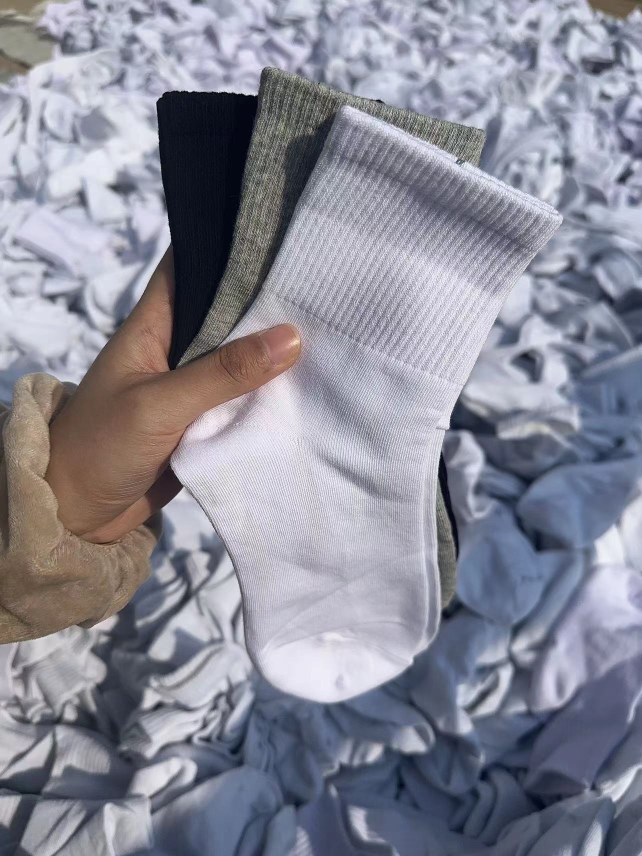 Zhuji calcetines al por mayor primavera y otoño calcetines de los hombres de la mitad de la pantorrilla color sólido simple desodorante absorbente de sudor calcetines de los hombres de la moda de la calle