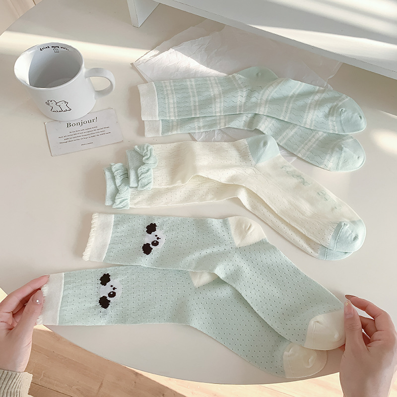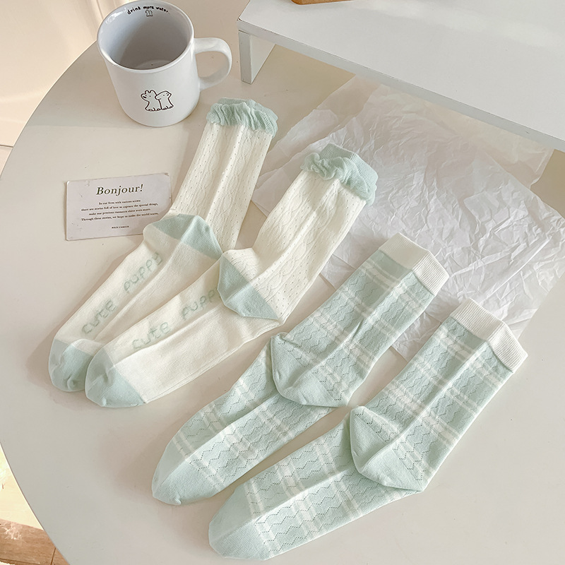 2025 primavera y verano nuevos productos japoneses verdes delgados calcetines de algodón transpirables anti-deslizante sudor calcetines de mujer frescas pila calcetines