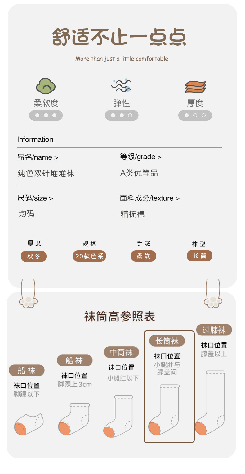 Calcetines para niños, calcetines de baile, calcetines de pila para niños y niñas, calcetines de pierna de algodón peinado de doble aguja, calcetines de pierna Morandi rectos primavera y otoño