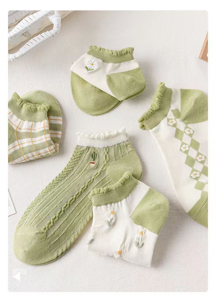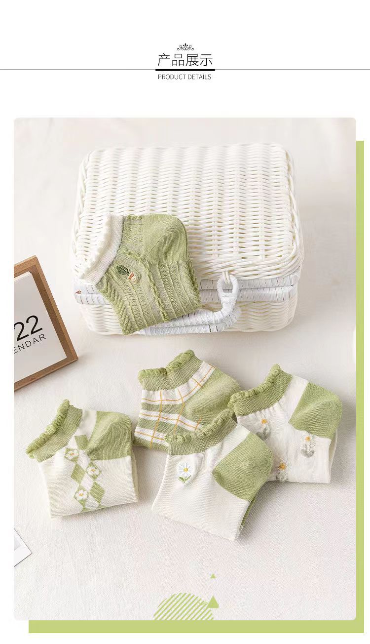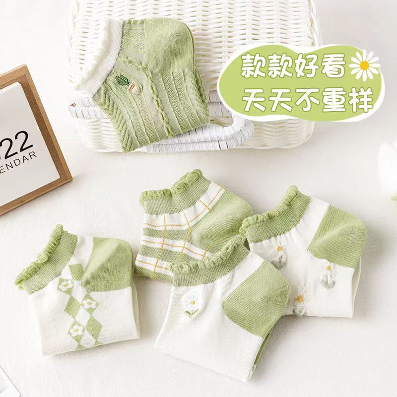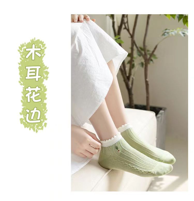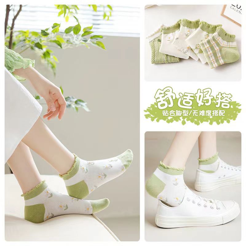 Calcetines de tobillo bajos de corte bajo verde de moda de primavera y verano calcetines de mujer delgada al por mayor Zhuji fábrica producción Comercio exterior calcetines de mujer