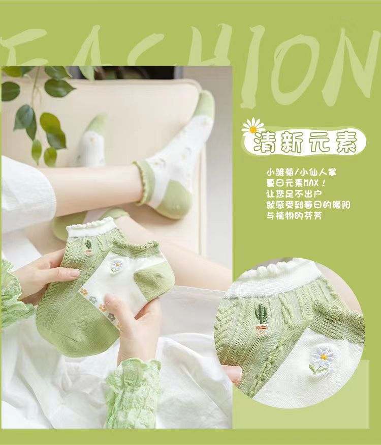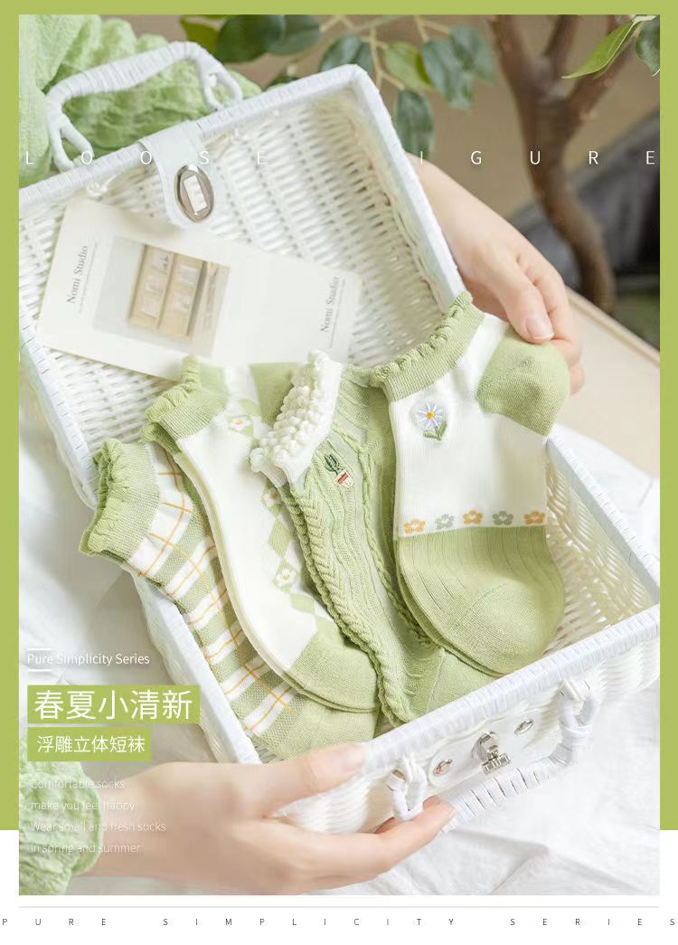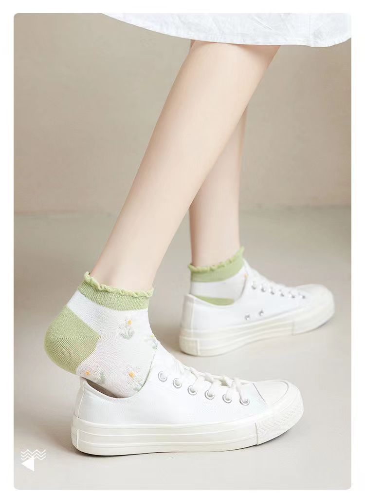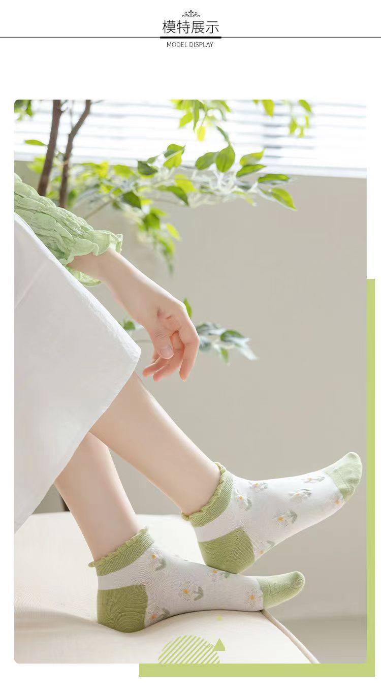 Calcetines de tobillo bajos de corte bajo verde de moda de primavera y verano calcetines de mujer delgada al por mayor Zhuji fábrica producción Comercio exterior calcetines de mujer