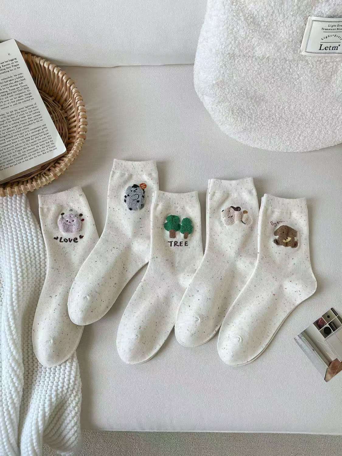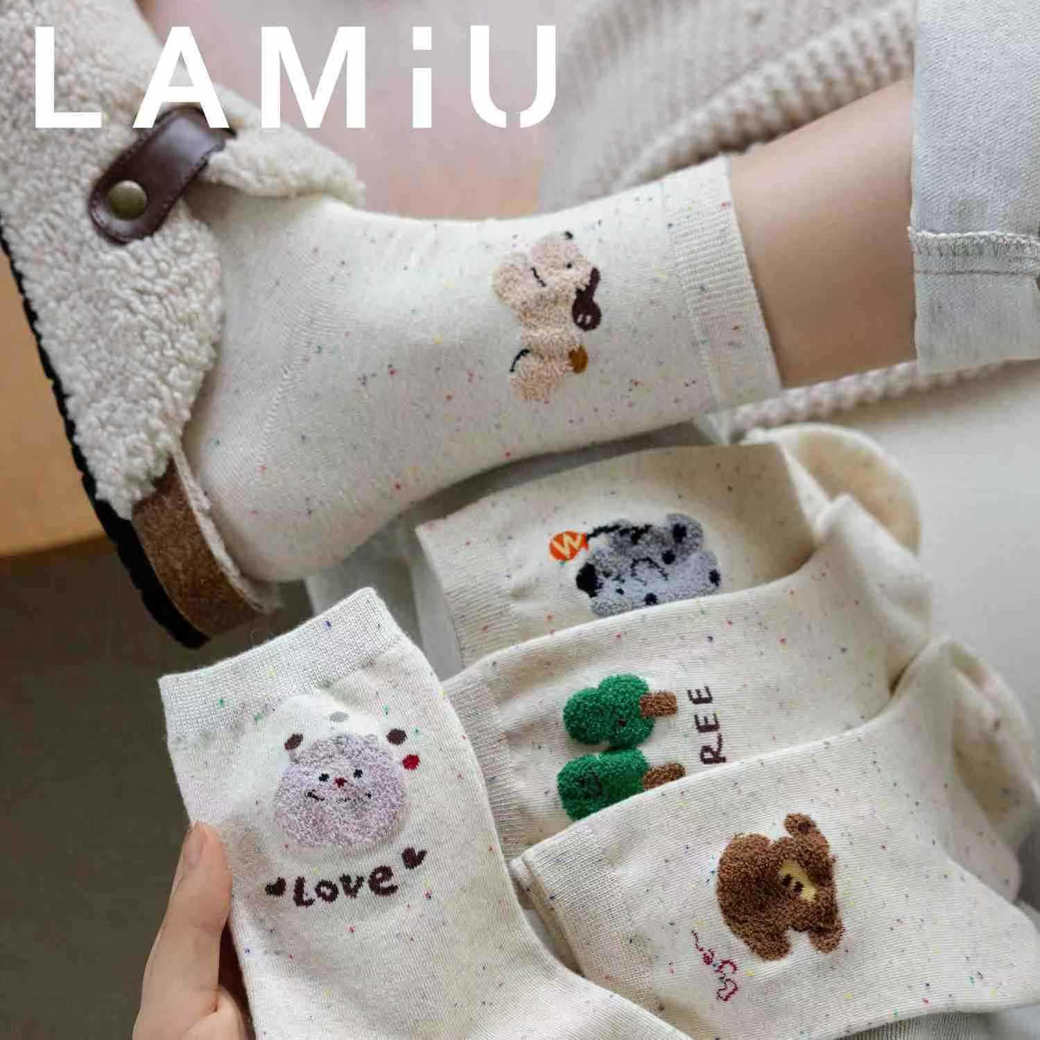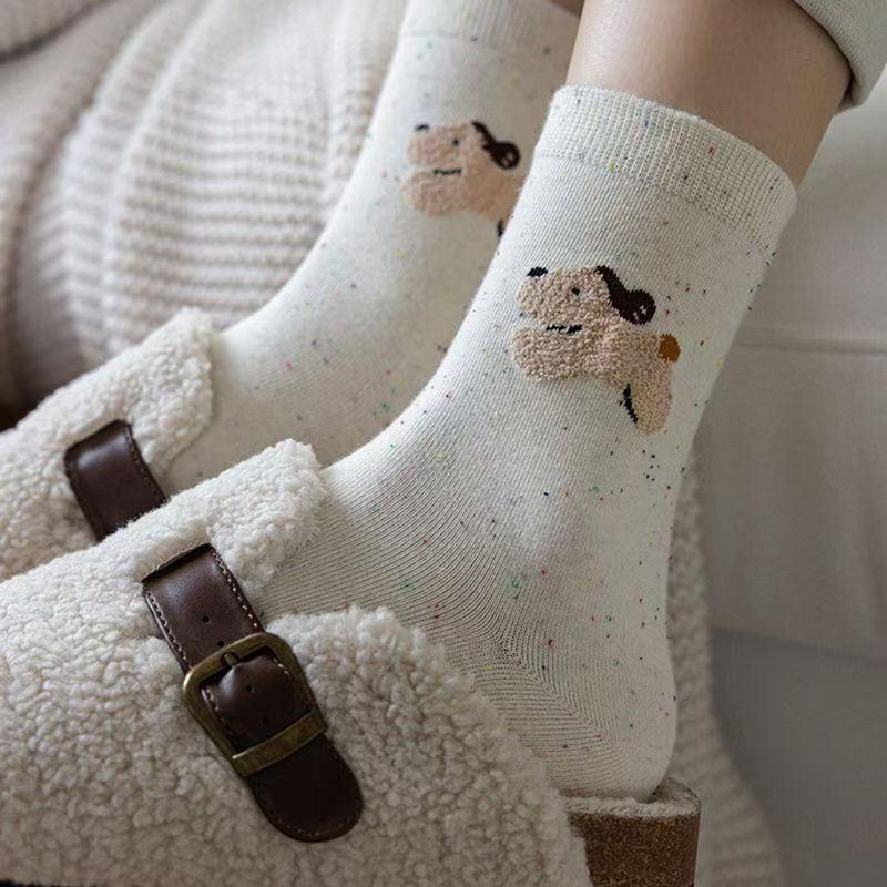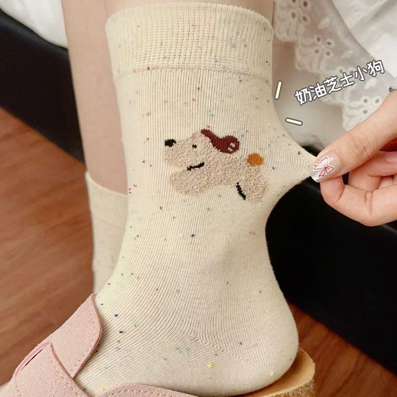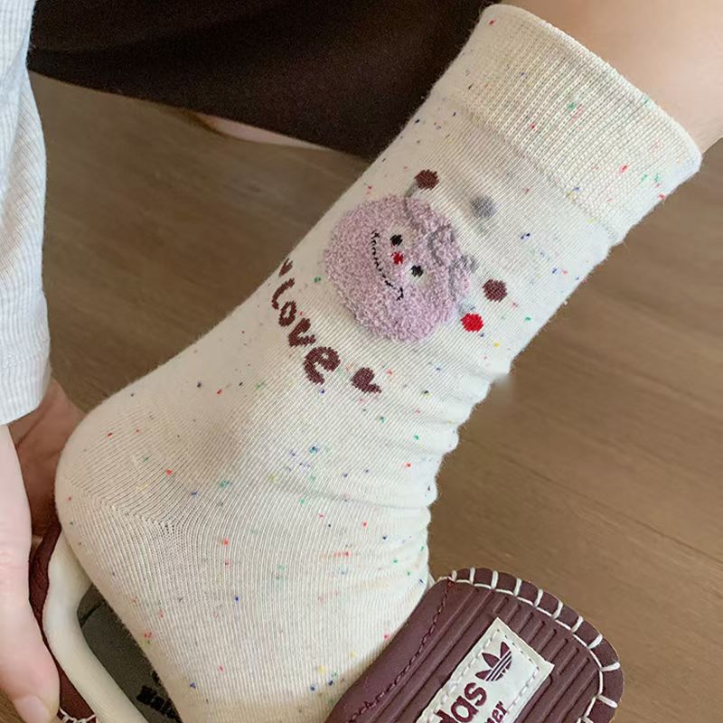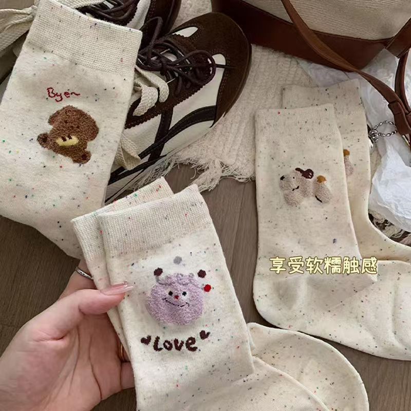 Flocado japonés linda chica hilo de puntadas dibujos animados otoño e invierno calcetines al por mayor Zhuji calcetines de mujer marea callejera