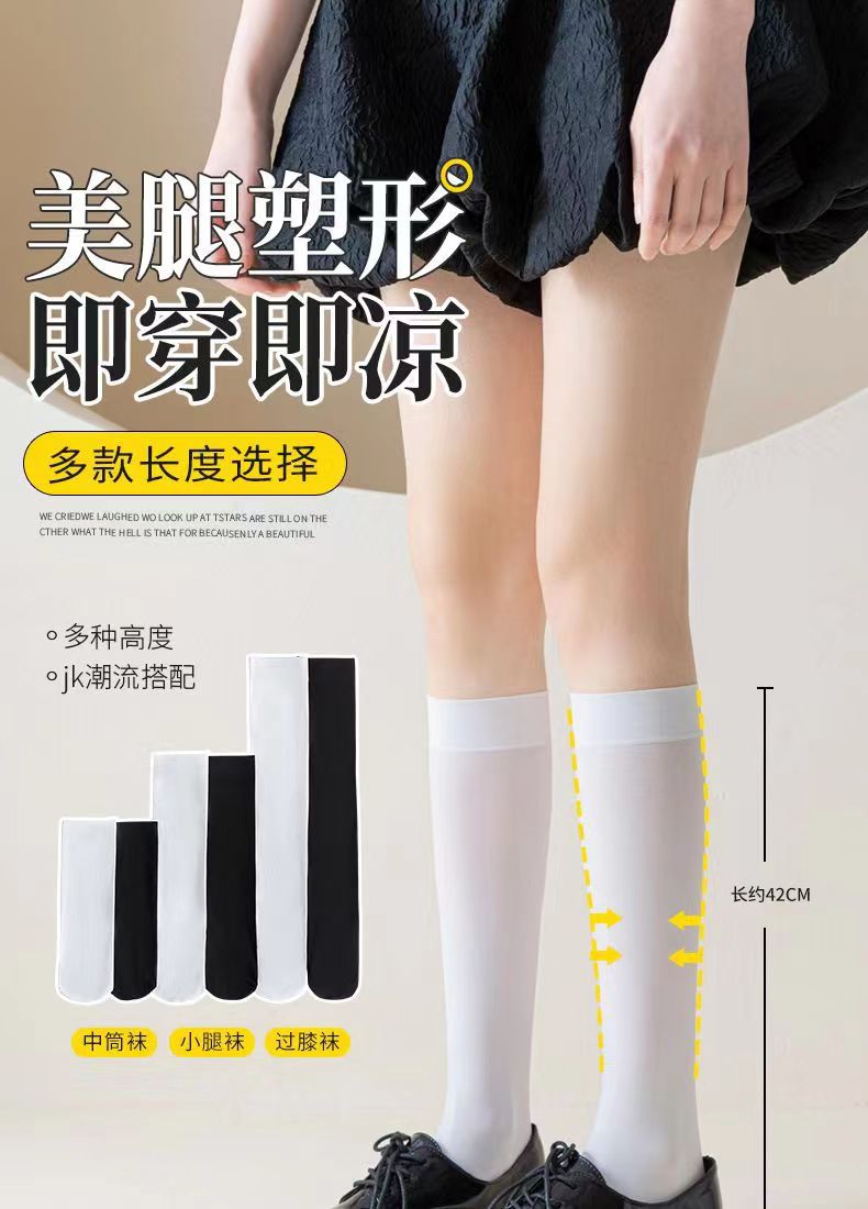 Tres pares envío gratis calcetines de pantorrilla de verano fino negro JK medias de presión flaco sobre la rodilla Calcetines de media pantorrilla
