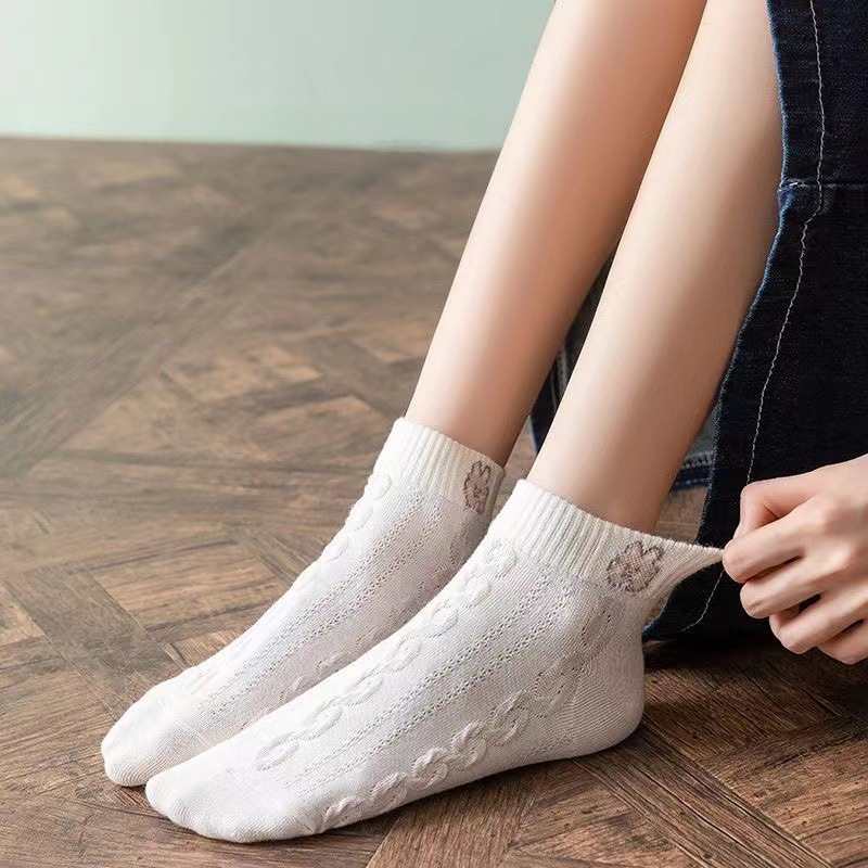 Zhuangyan al por mayor de tiendas de dibujos animados blancos japoneses calcetines cortos y poco profundos calcetines de barco invisibles al por mayor de mujeres