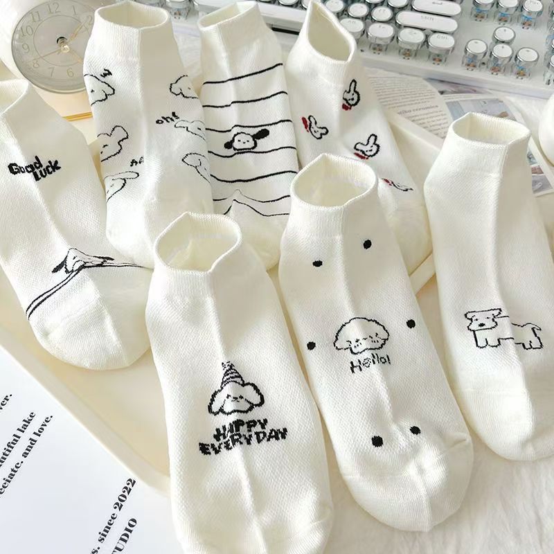 Calcetines de nuevo producto, calcetines de mujer, estilo fino de verano, estilo coreano, calcetines blancos japoneses de primavera y otoño, calcetines de barco de tubo corto de verano para niñas