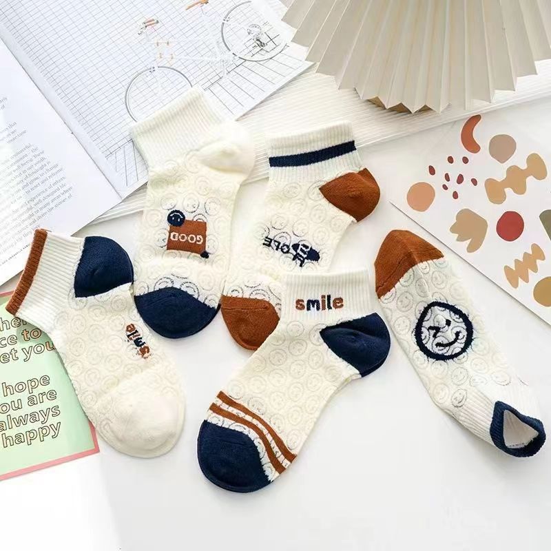 Zhuangyan niños verano hueco sonriente calcetines de mujer calcetines primavera y verano delgados antiolor calcetines de barco de altura baja no se caen