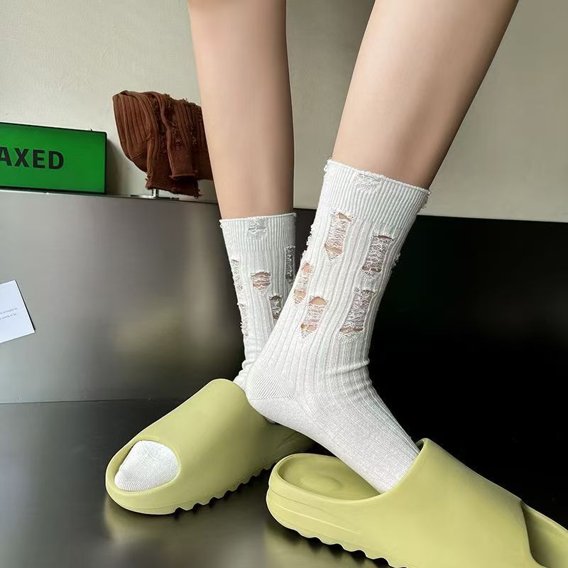 Medias de pila blanca de verano delgadas calcetines agujeros de moda transpirables medias de color sólido al por mayor en línea Zhuang Industry