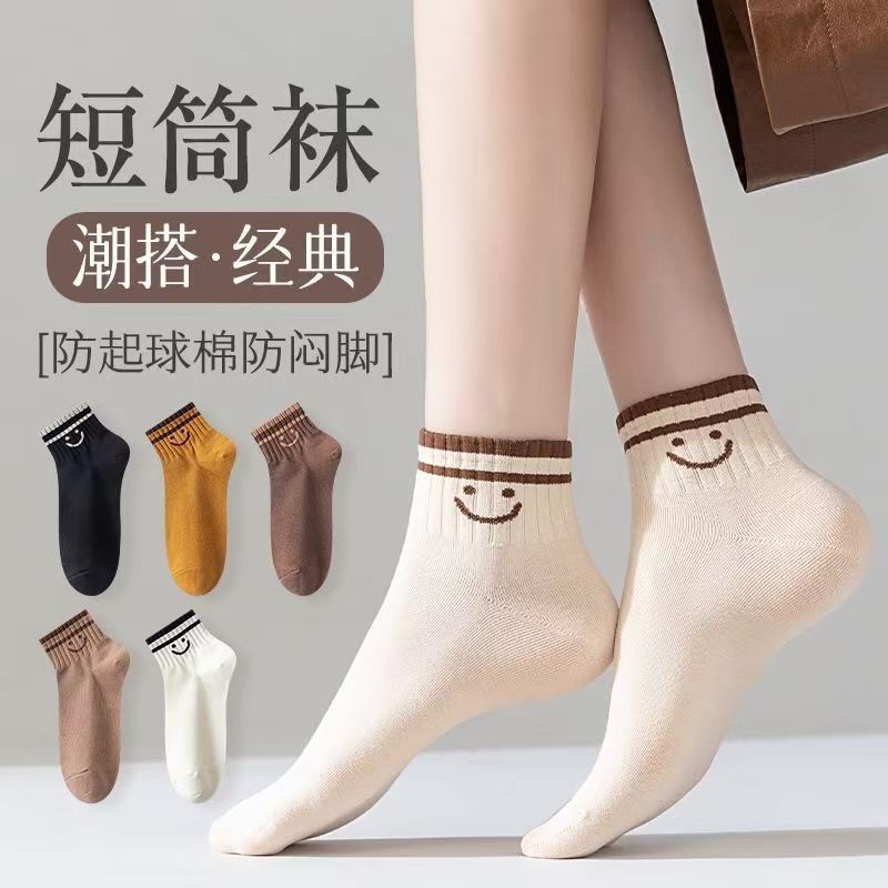 Calcetines Zhuji para mujer, estilo fino, transpirable y versátil, calcetines de tubo corto en blanco y negro, calcetines de mujer al por mayor, calcetines de barco, calcetines de moda callejera