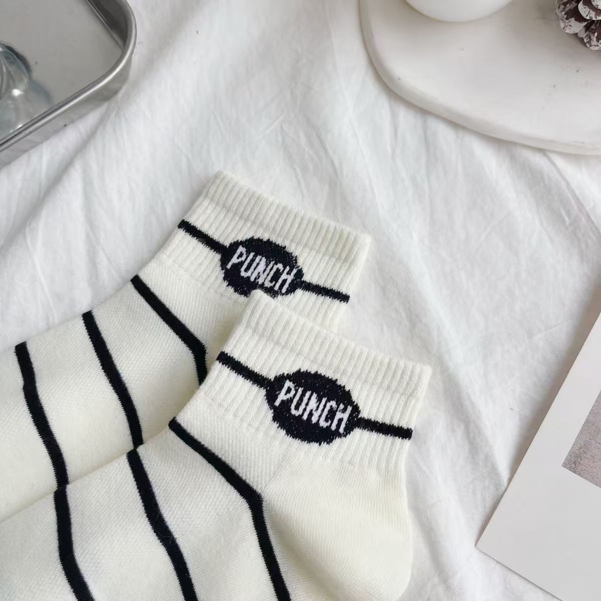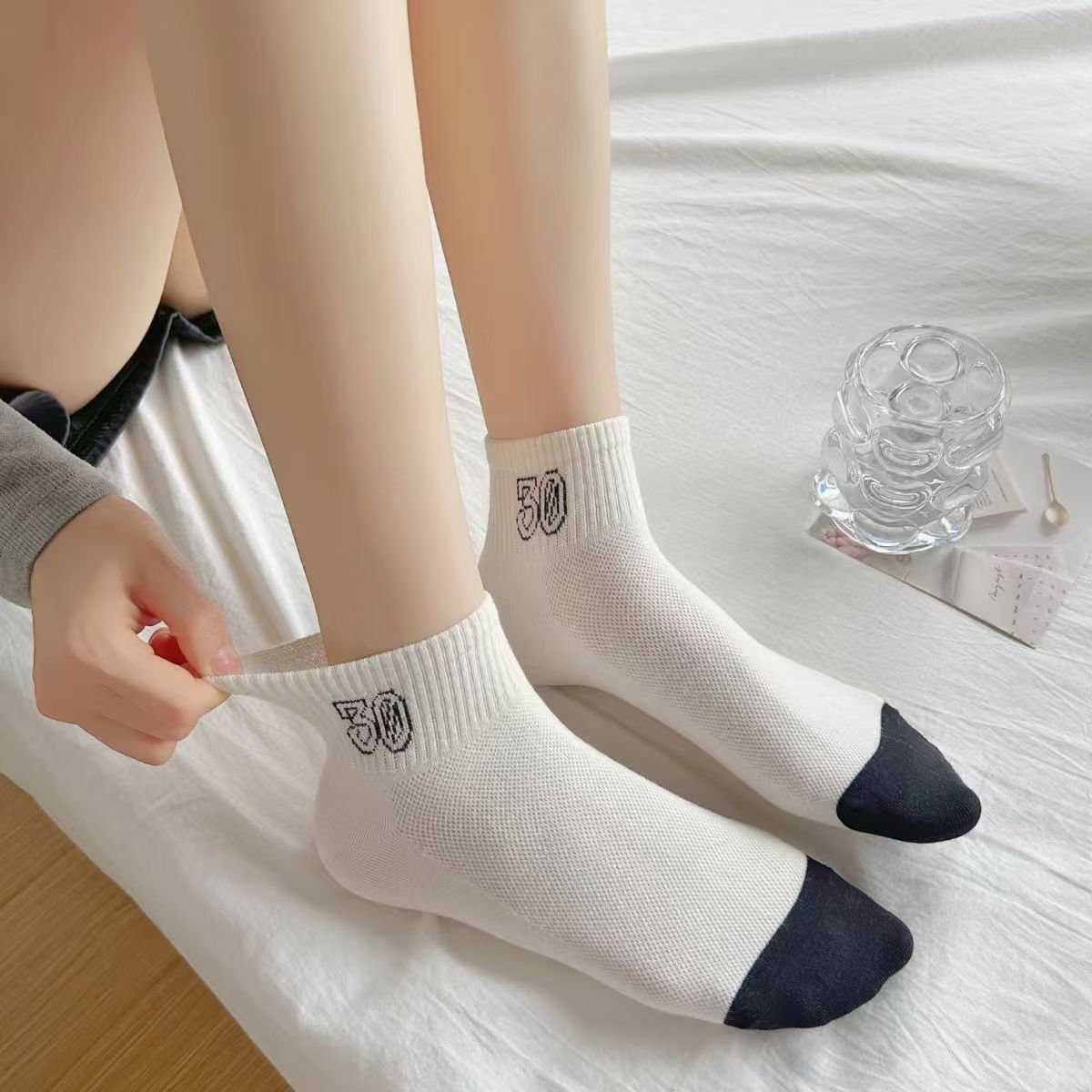 Calcetines de hilo de punteado de colores, calcetines de mujer, algodón fino de verano, calcetines bajos con bordado de cachorro lindo japonés de moda