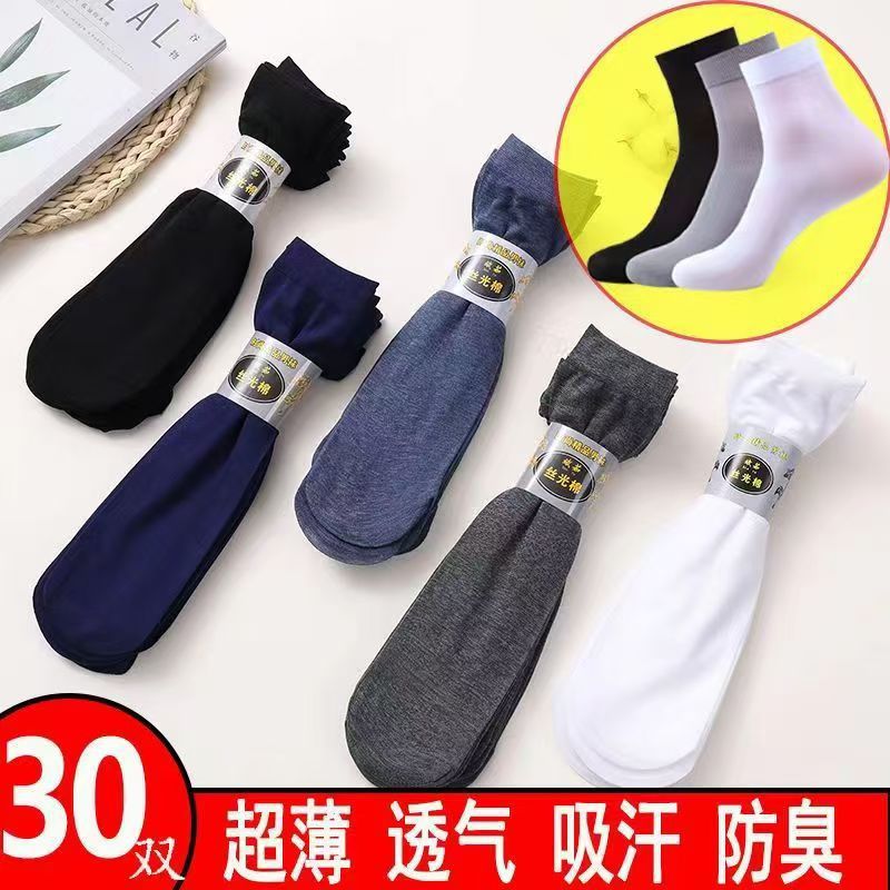 Verano hombre mediano calcetines de baño de pies calcetines de algodón mercerizado de color sólido calcetines comerciales delgadas para hombres al por mayor