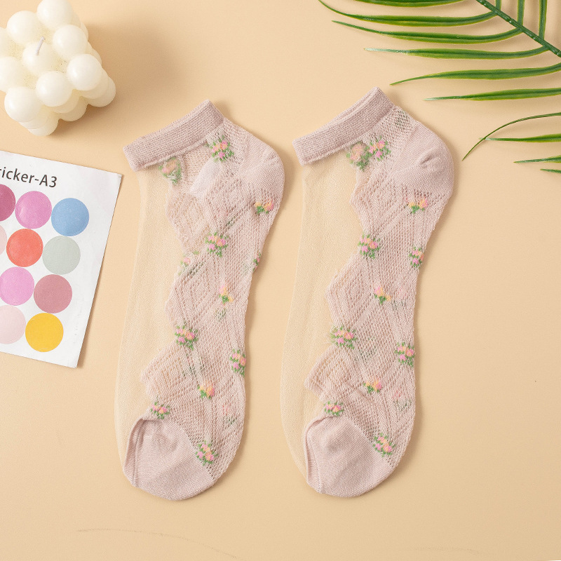Zhuji calcetines al por mayor de las mujeres del verano de corte bajo-top invisible barco Calcetines de malla de seda de algodón suave transpirable marea corta Calcetines