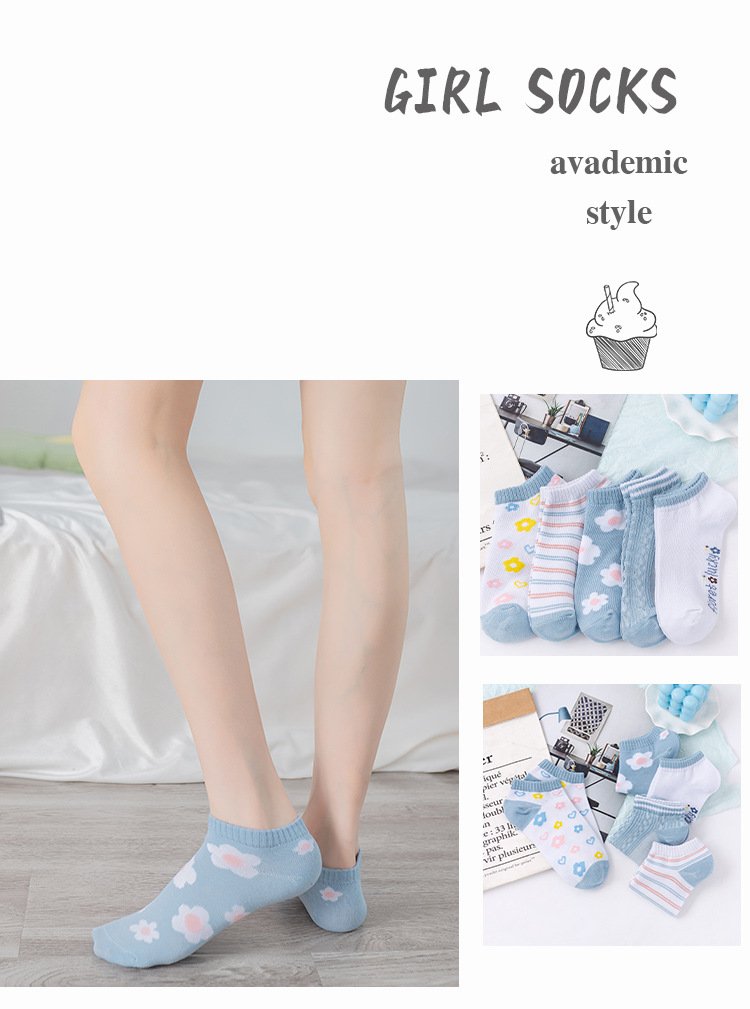 Calcetines de Zhuji Tianlan flor pequeña de la niña japonesa en corte bajo-top invisible barco calcetines escuela estudiante Calcetines