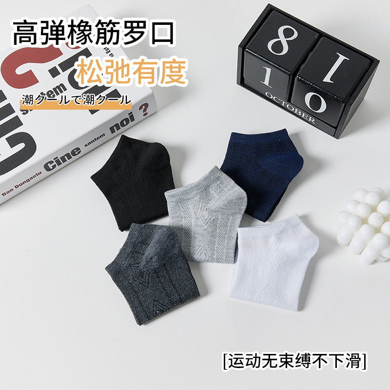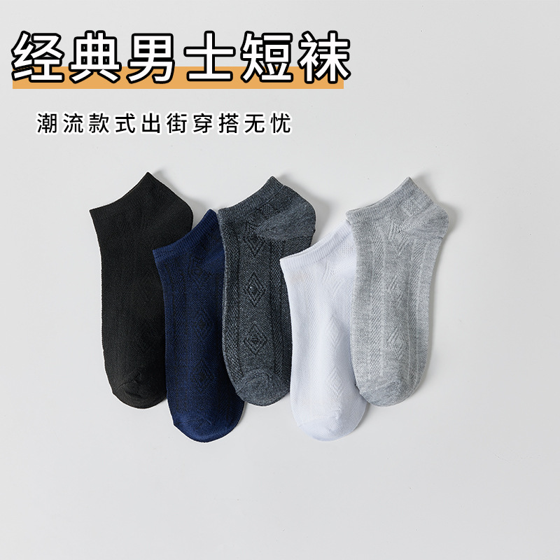 Zhuji calcetines hombres clásico pequeño Plaid negro gris primavera y verano sudor-absorbente transpirable de corte bajo corto barco calcetines moda lote