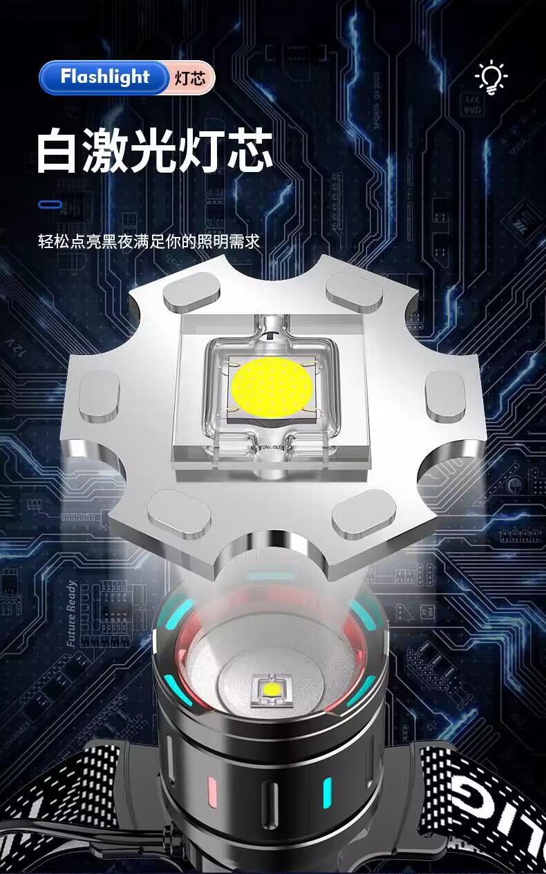 Luz delantera de luz brillante láser blanca súper brillante de 30W recargable USB para llevar una aventura de pesca nocturna al aire libre Luz delantera súper brillante