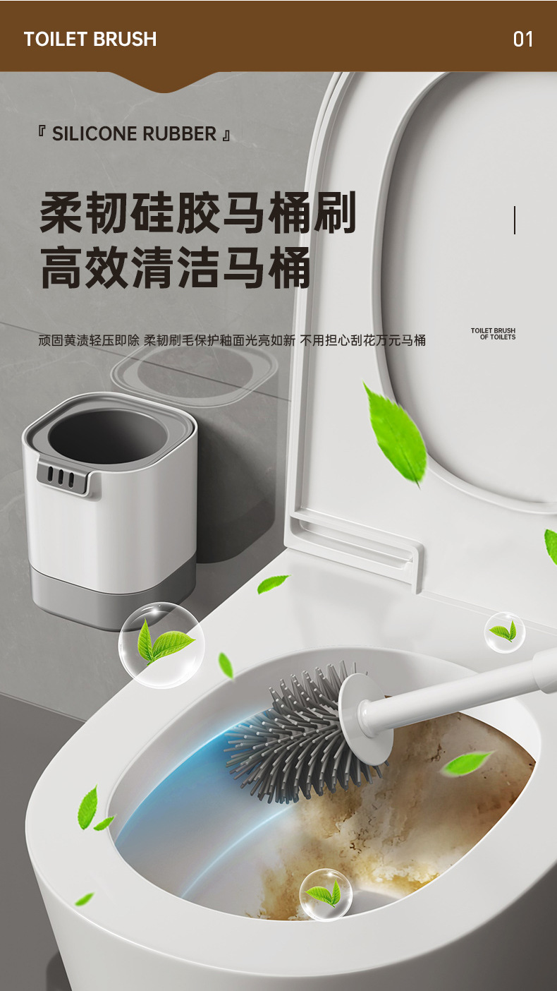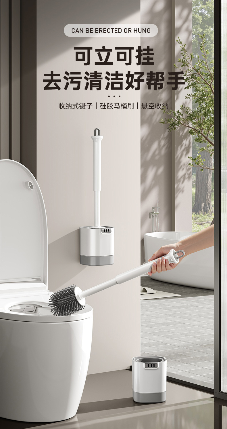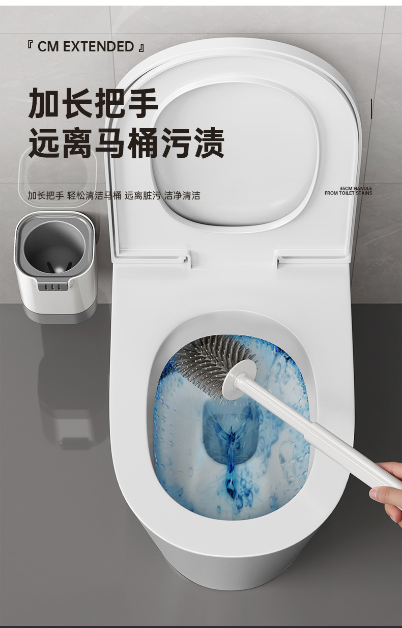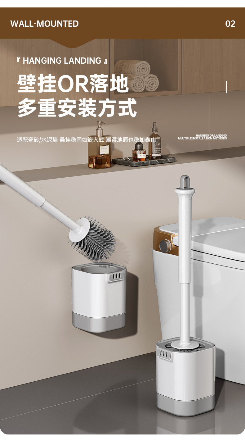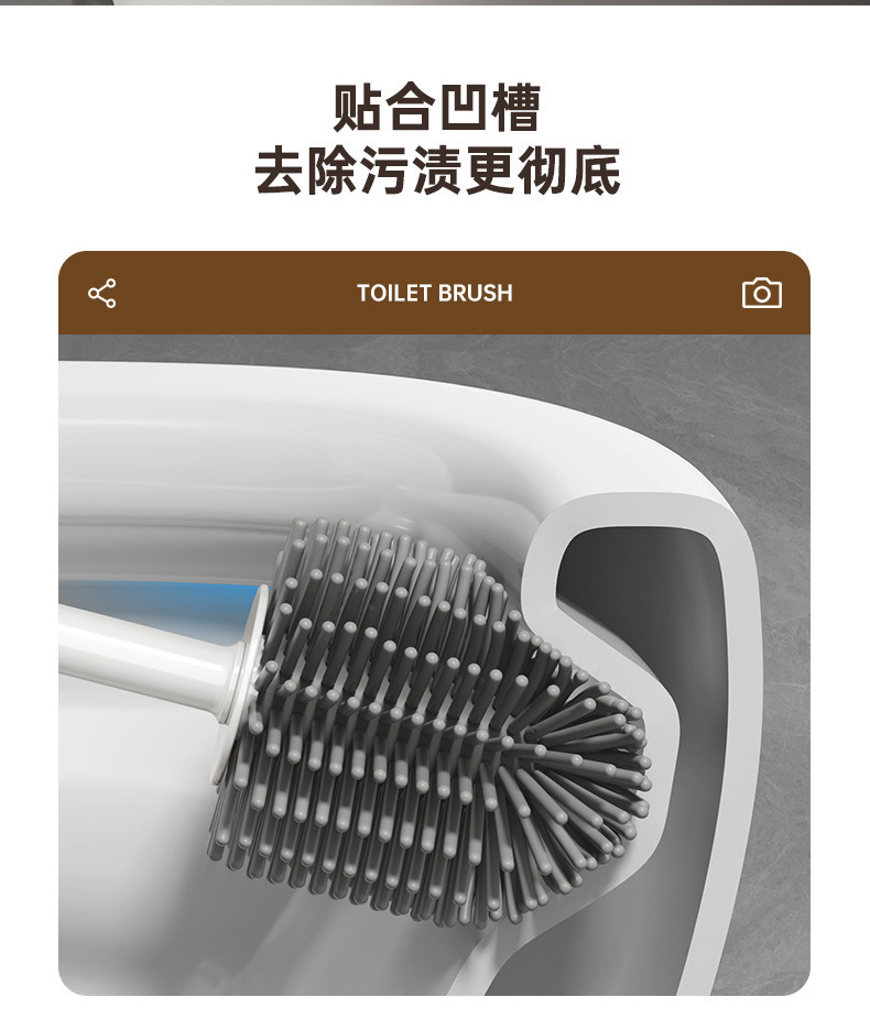 Nuevo cepillo de inodoro de silicona sin ángulo muerto de alto nivel con base colgante de pared tipo conjunto de almacenamiento alargado inodoro transfronterizo