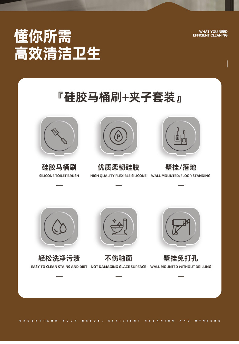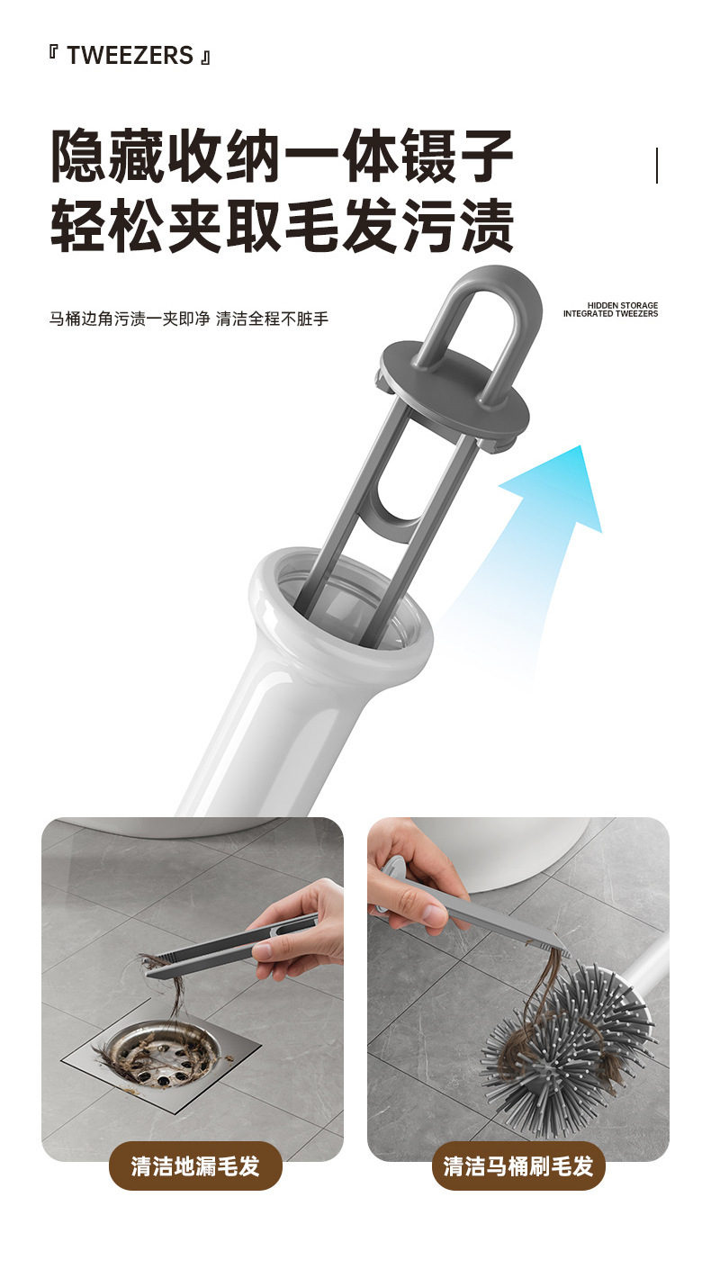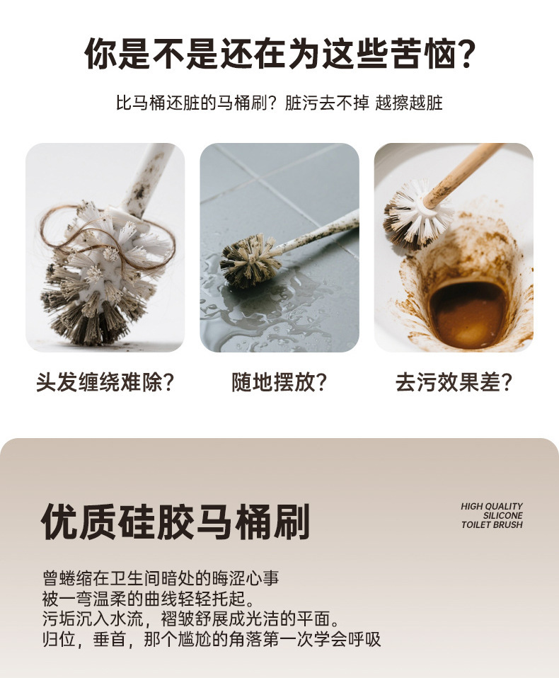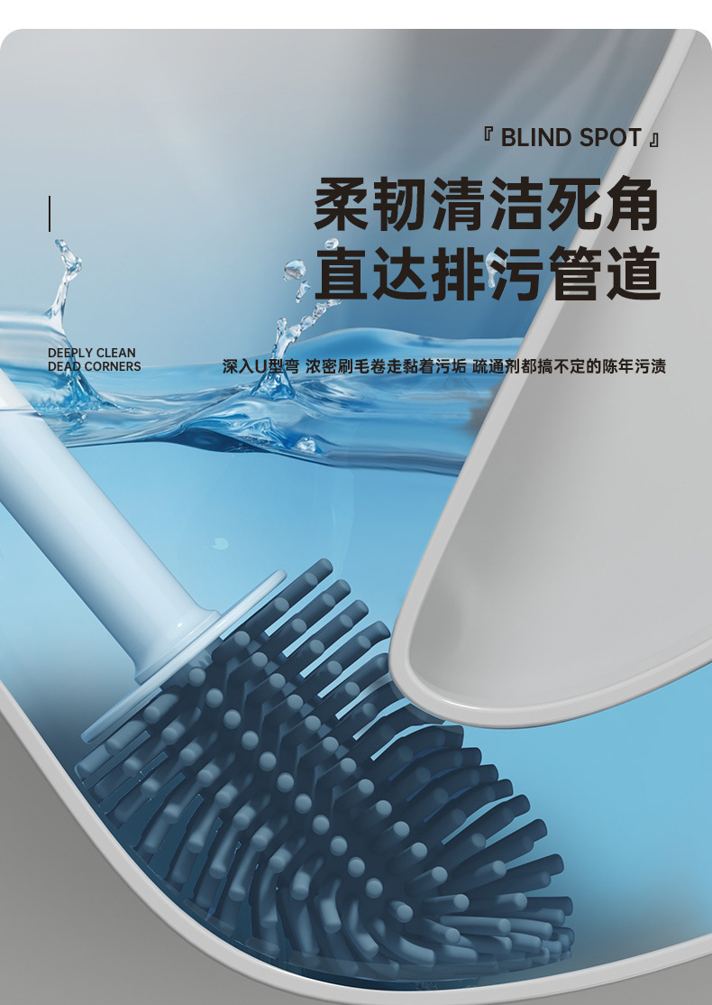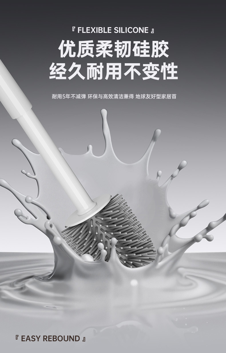 Nuevo cepillo de inodoro de silicona sin ángulo muerto de alto nivel con base colgante de pared tipo conjunto de almacenamiento alargado inodoro transfronterizo