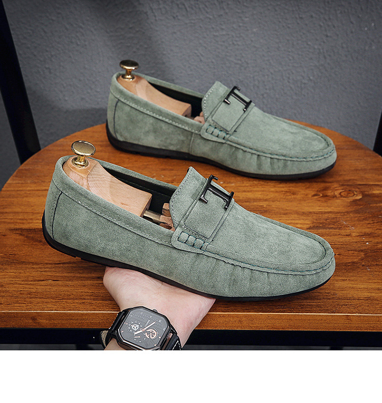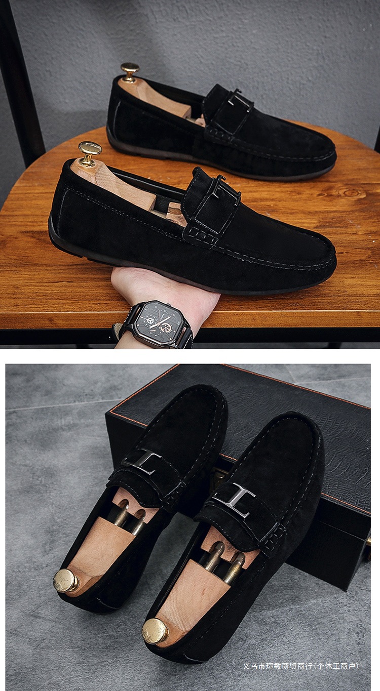 Zapatos Doudou para hombre verano 2025 nuevos zapatos de cuero esmerilado de terciopelo perezoso de un pie zapatos de moda de conducción de negocios para jóvenes