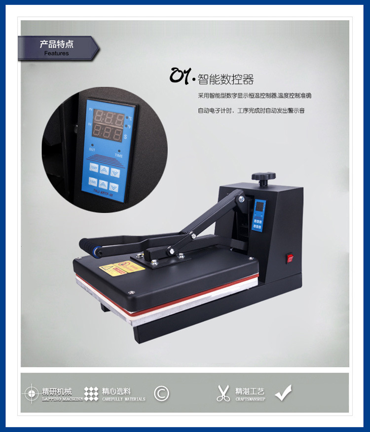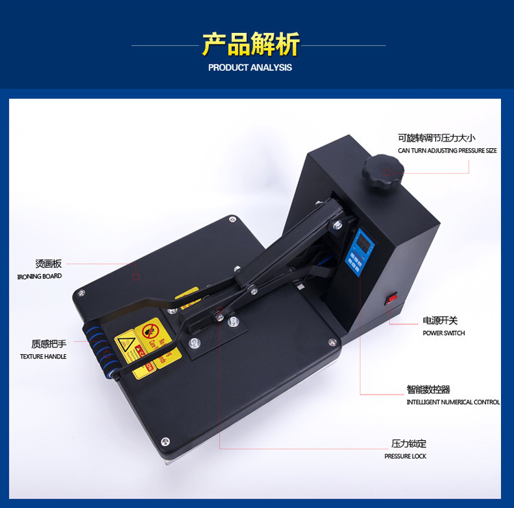 38 * 38 máquina de transferencia térmica máquina de prensa plana máquina de prensa pequeña máquina de pintura de alta presión impresión T-shirt perforación multifuncional