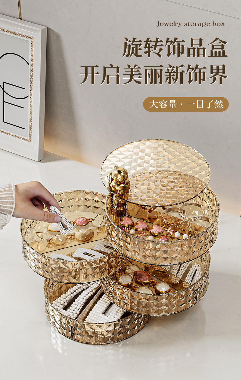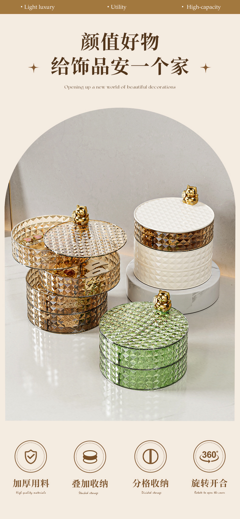 Placa de lujo ligera para el hogar sala de estar joyería caja de lápiz labial caja de almacenamiento cosméticos almacenamiento placas de almacenamiento giratorias