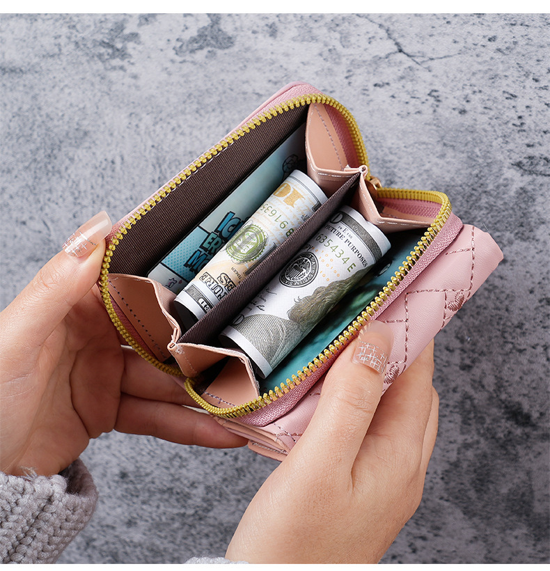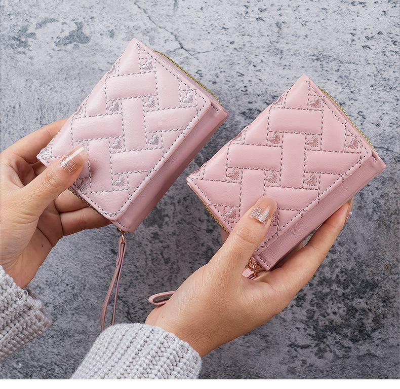 Fábrica nueva billetera corta simple bordado amor PU bolso de cambio multi tarjeta pequeña cartera bolsa de tarjetas