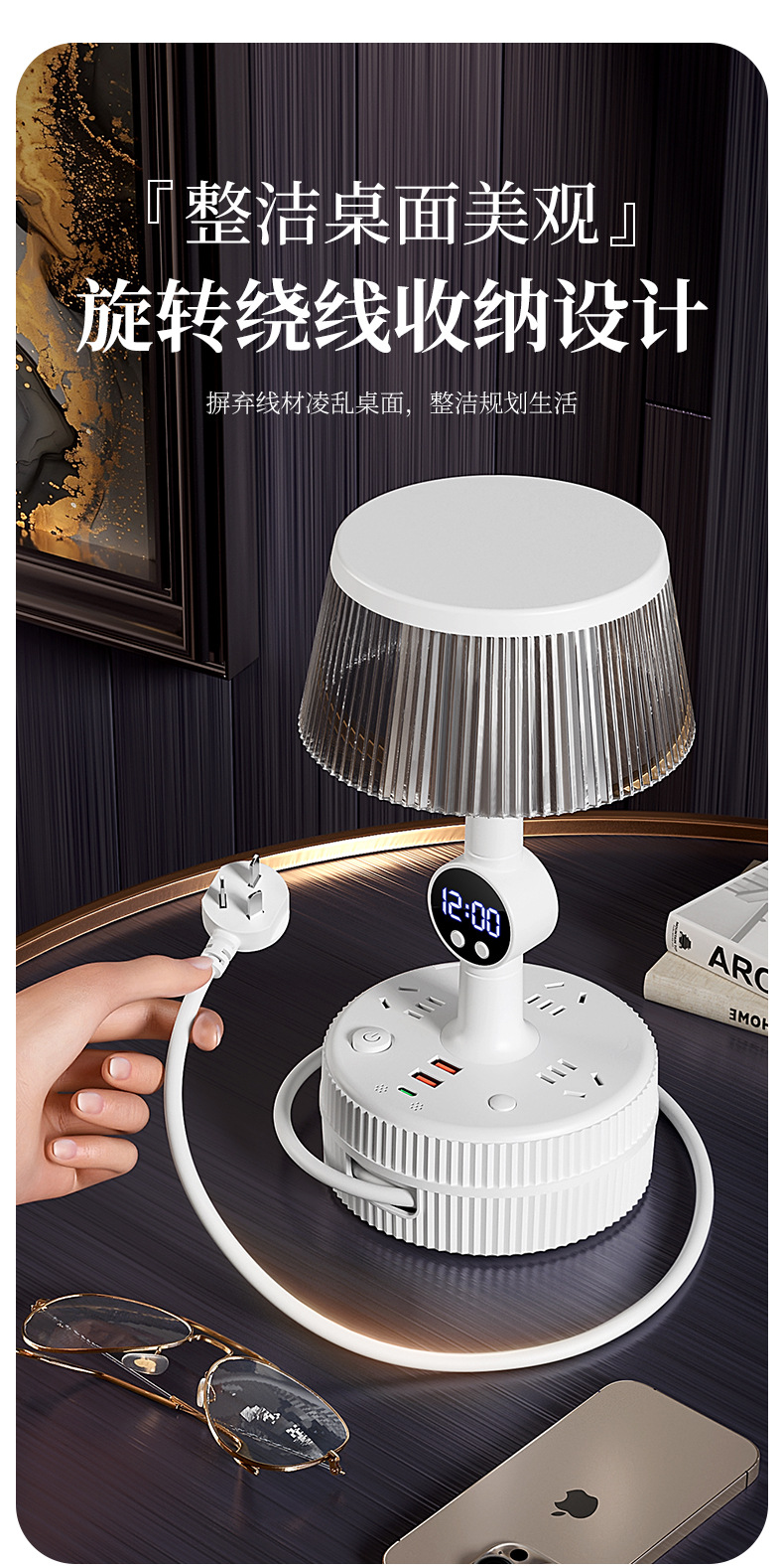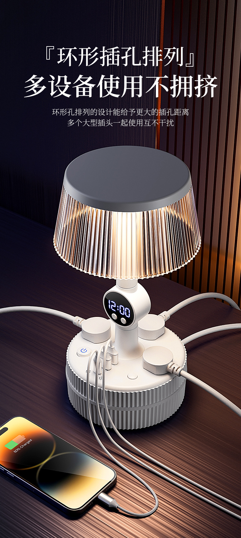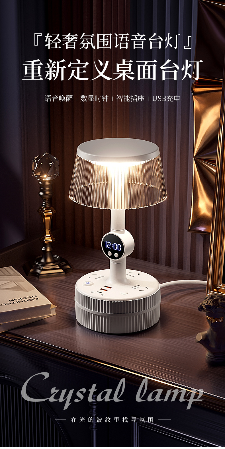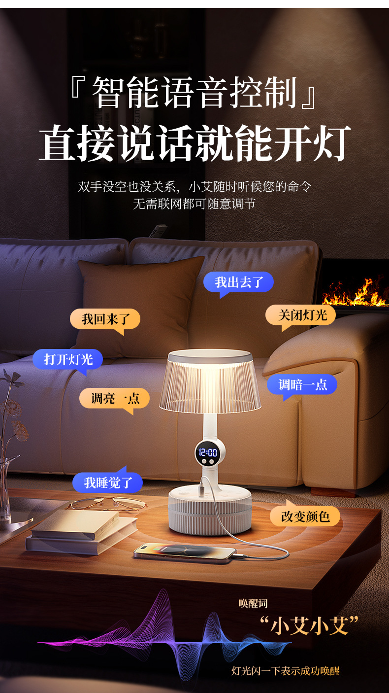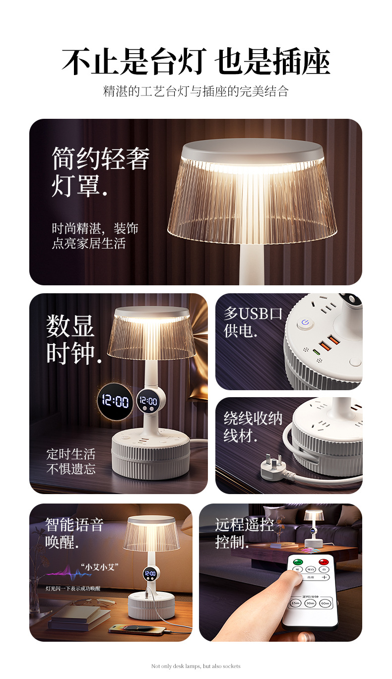 Control de voz inteligente lámpara de dormitorio lámpara de cabecera enchufable de mes de cabecera de escritorio socket luz de noche lujosa sensación de alto nivel