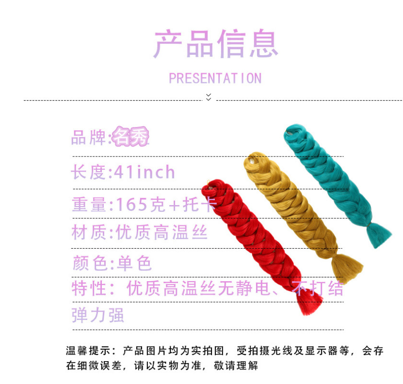 Color de comercio exterior peluca de trenza grande xpression negro africano peluca de trenza sucia fibra química trenza grande