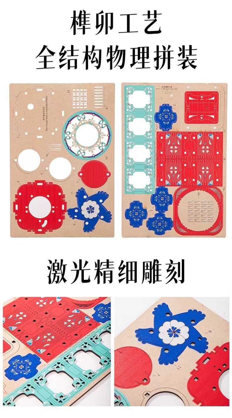 Nueva caja de música 3D con lámpara de madera hecha a mano caja de joyería regalo creativo DIY caja de música al por mayor