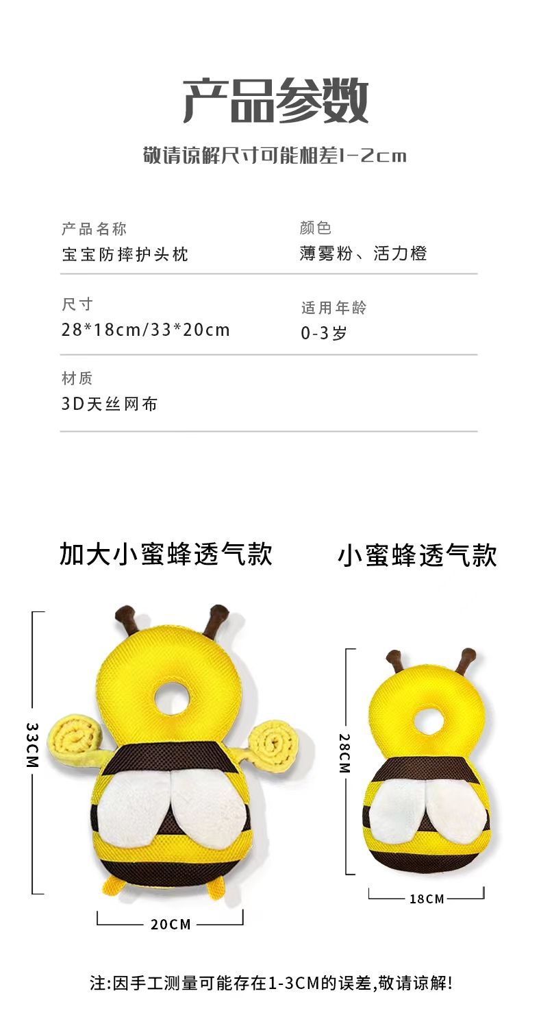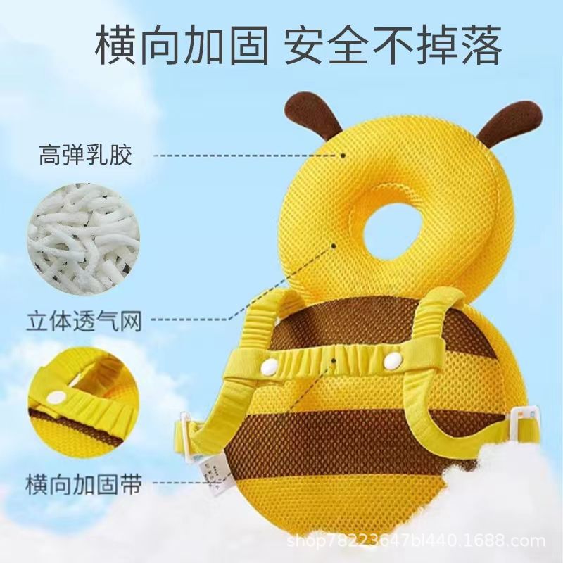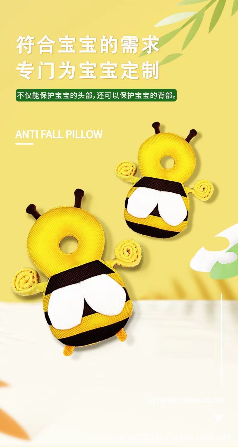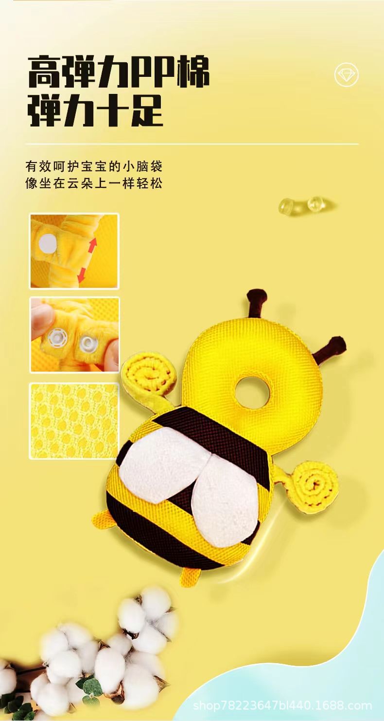 Almohada de protección para la cabeza del bebé, artefacto de protección para la cabeza, transpirable para las cuatro estaciones, diseño de abejita, anticaídas para niños que aprenden a caminar, diseño de dibujos animados.