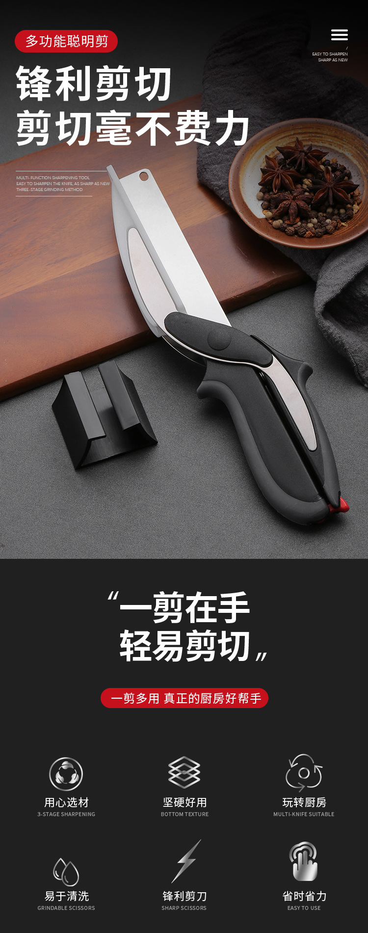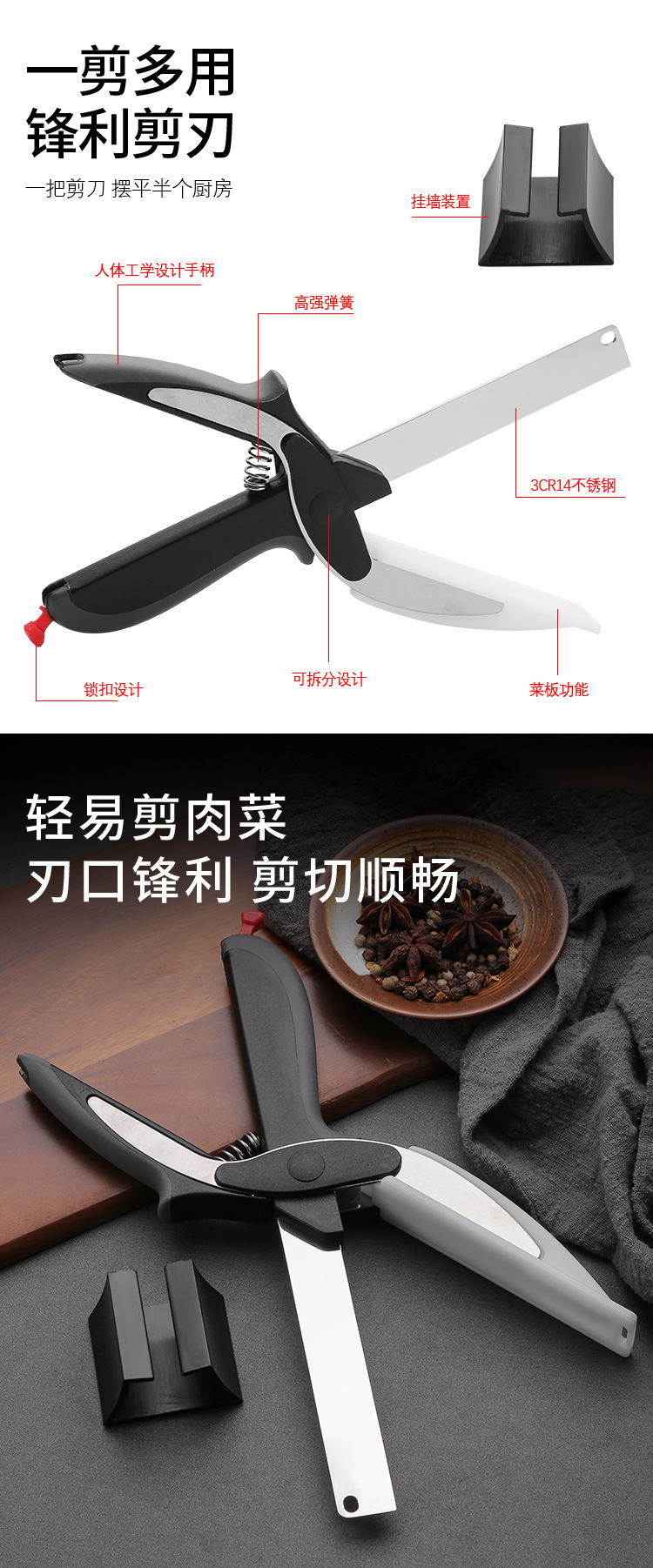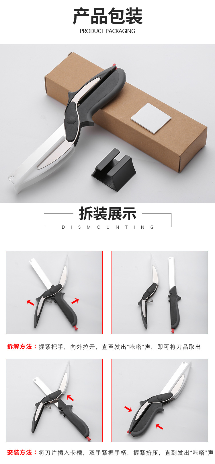 Tijeras de cocina tijeras de hueso de pollo multifuncionales tijeras de cocina de acero inoxidable desmontaje plato de corte inteligente tabla de cortar multiusos
