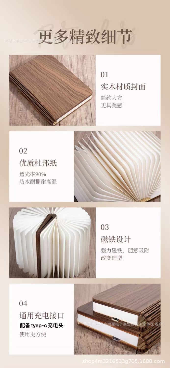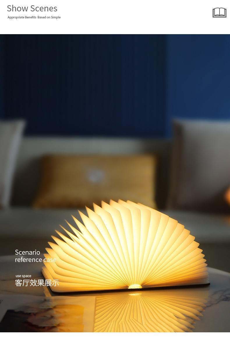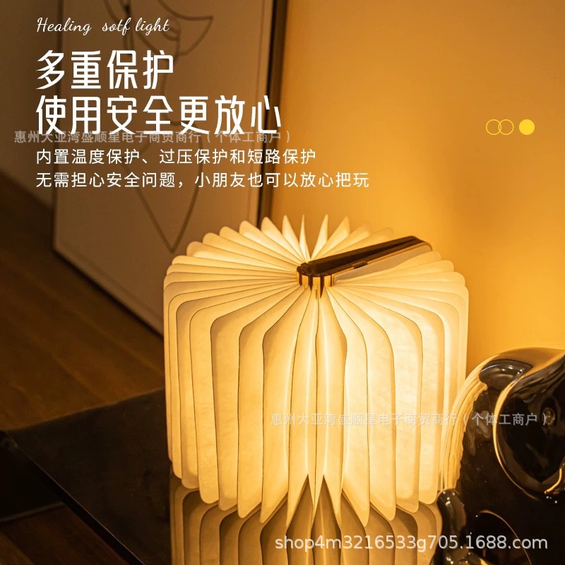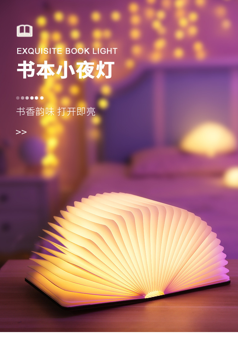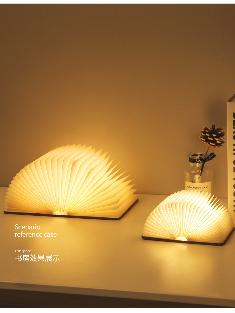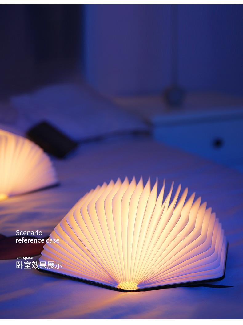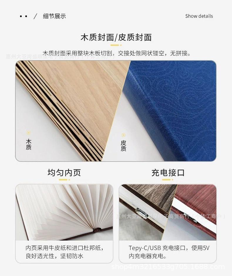 Led madera lámpara de libro iluminación lámpara de escritorio regalos al por mayor tallado plegable página bluetooth luz de noche luz de atmósfera