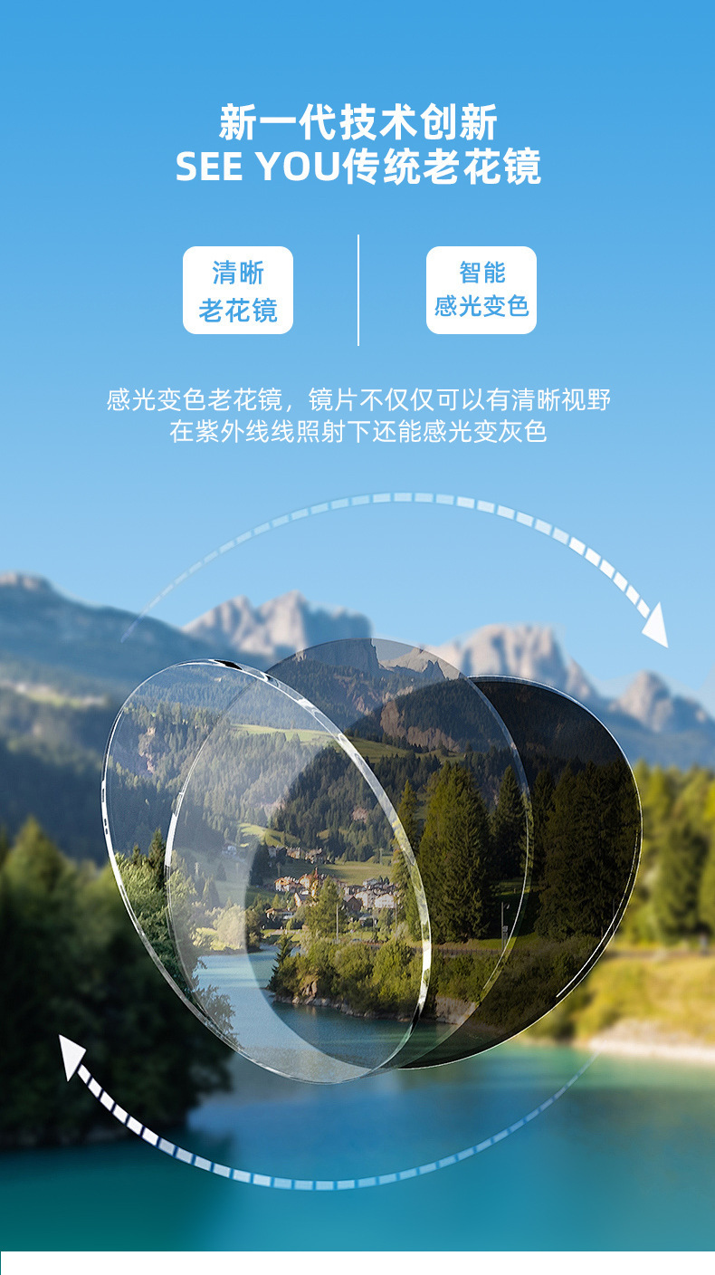 Nuevas gafas anti-luz azul de decoloración fotográfica multifocal para ver cerca y lejos gafas de alta definición de mediana edad