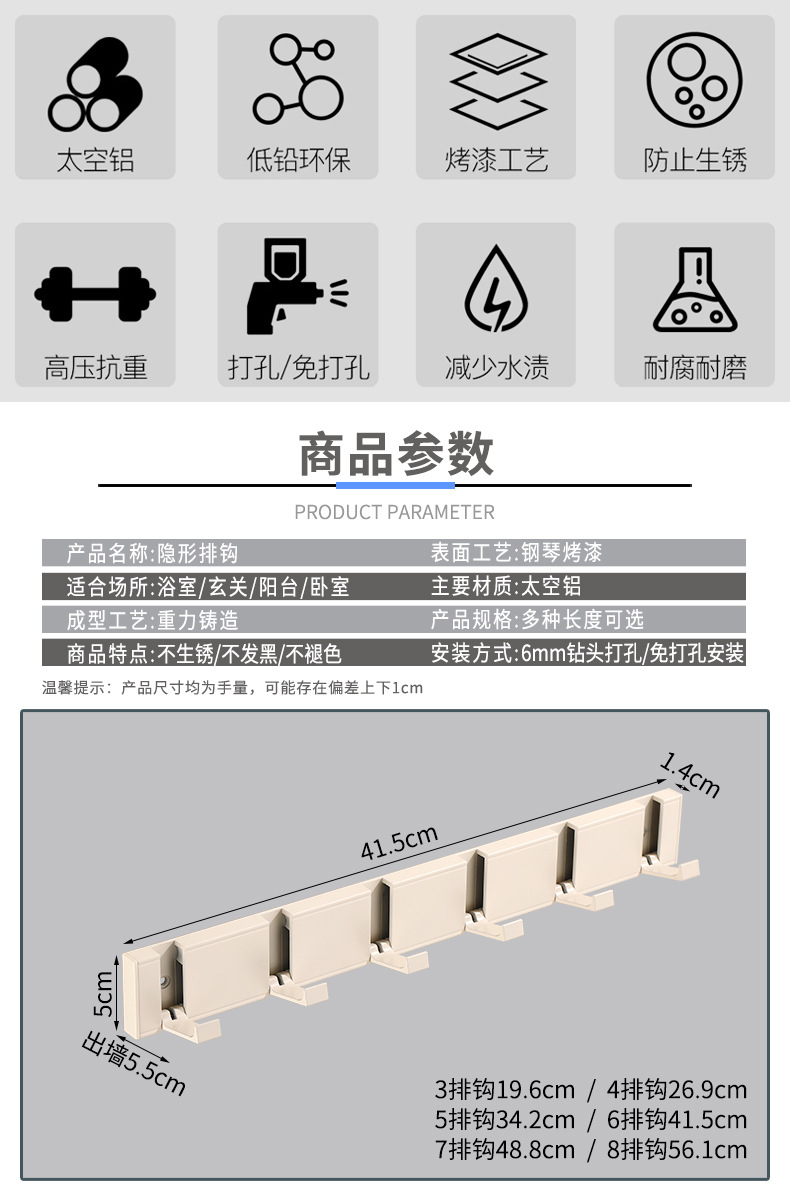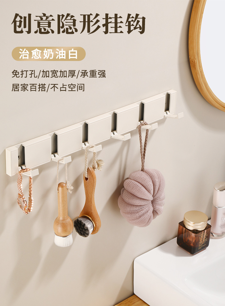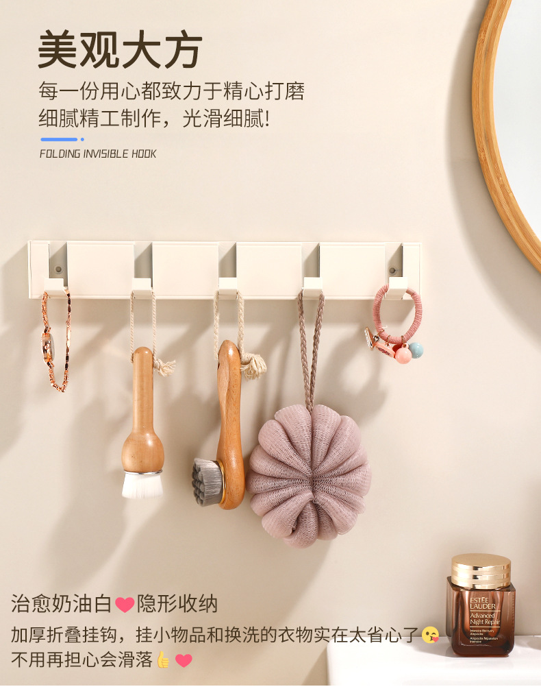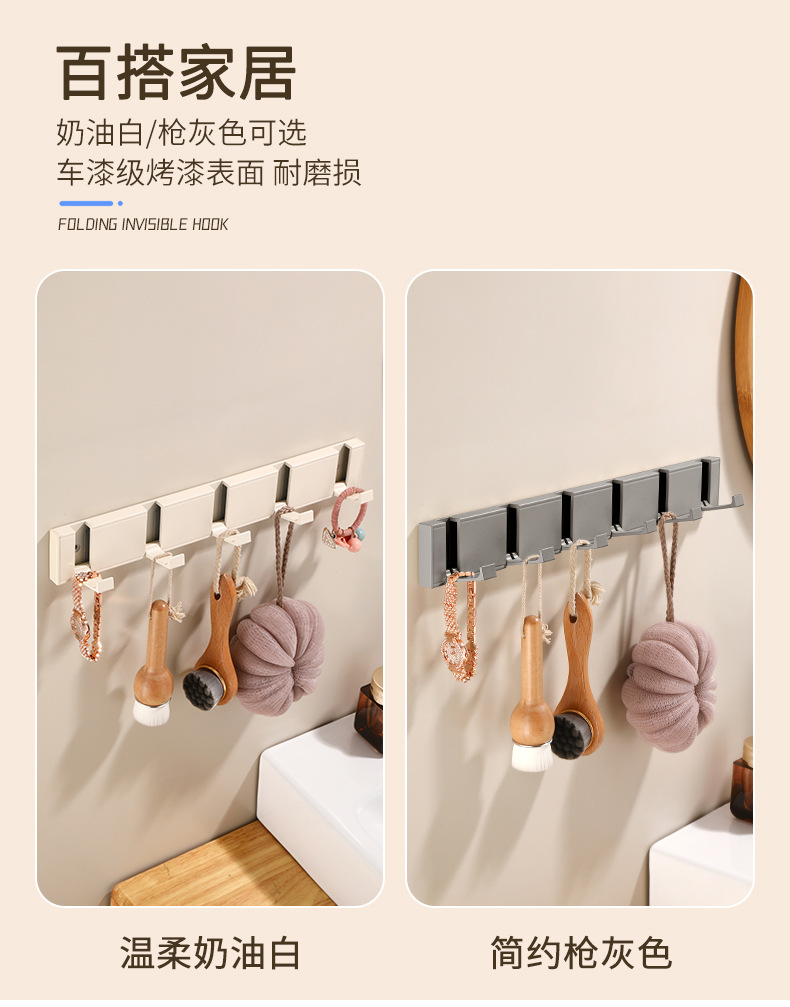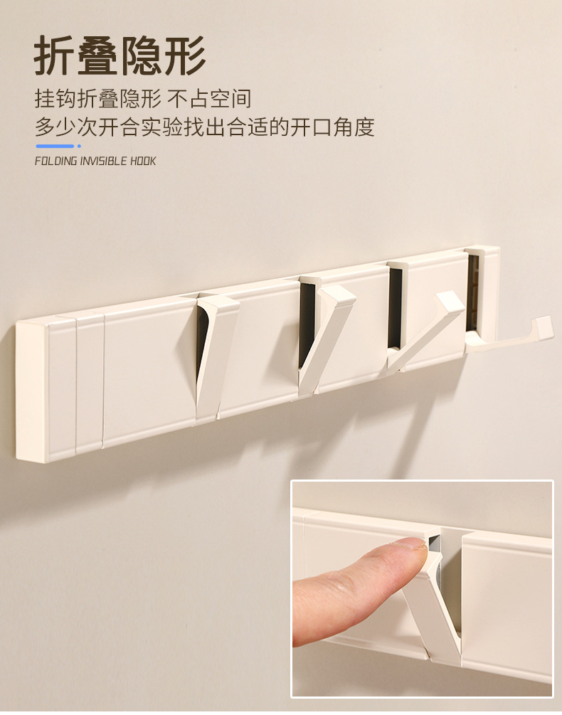 Blanco crema gancho invisible percha de ropa puerta de pared trasera sala de prueba plegable puerta de entrada pared perforación de gancho