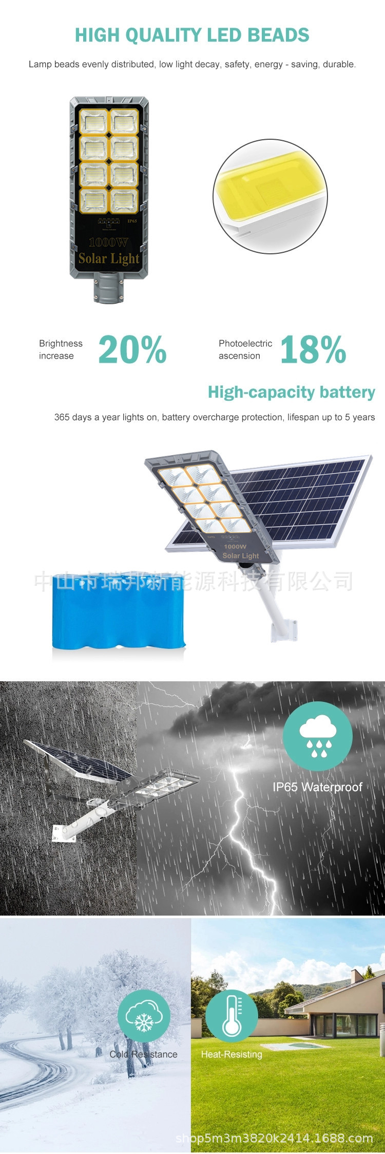Luz solar de calle a prueba de agua de alta potencia al aire libre 8 tazas reflector 500W600W1000W con función de control remoto