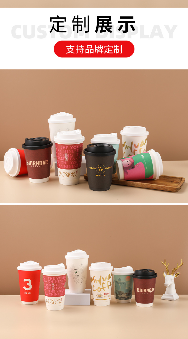 Taza de café desechable de doble capa taza de papel en stock al por mayor aislamiento térmico anti-escaldado taza hueca engrosada taza de bebida caliente de papel Kraft