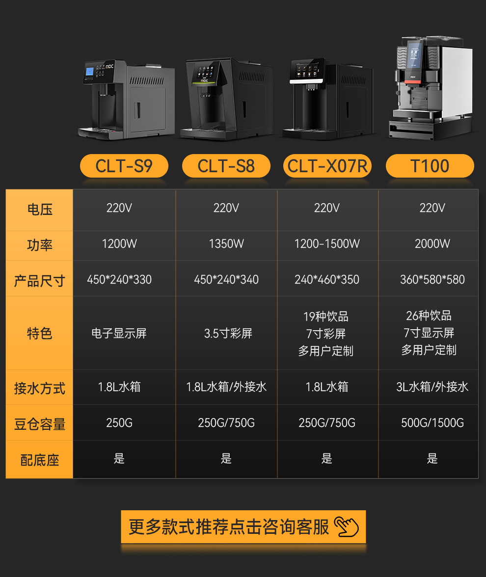 | Colores | Cafetera totalmente automática,Cafetera italiana automática s8,Máquina de café espresso totalmente automática s8p,Cafetera automática T100,Máquina todo en uno de café instantáneo y bebida de molino instantáneo de autoservicio,Cafetera automática s9,Máquina de café totalmente automática s9p |