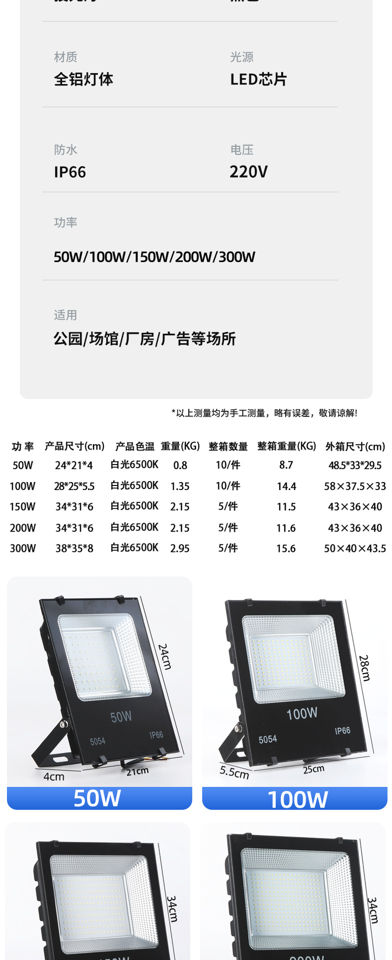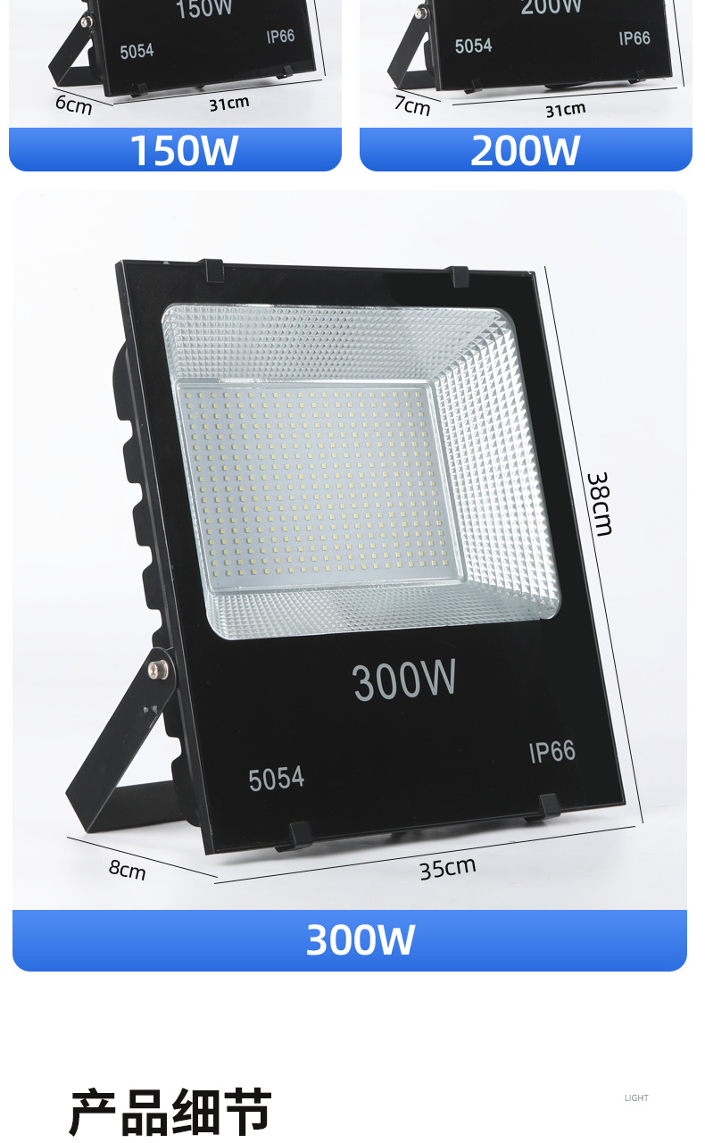Reflector LED de alta potencia, ultrabrillante, luz fuerte, cuadrado, para obras de construcción, luz de proyección, reflector impermeable para exteriores