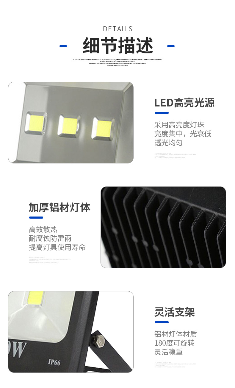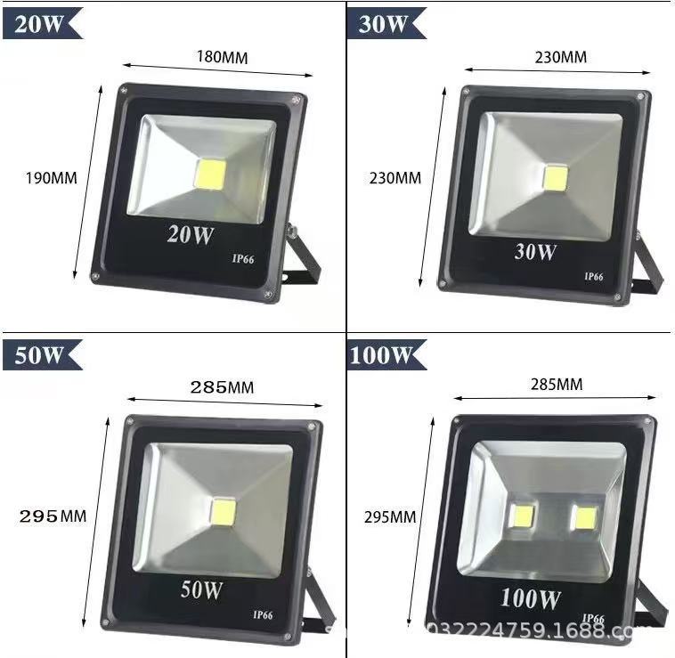 Lámpara de inundación lámpara de proyección LED lámpara cuadrada lámpara de inundación negra 20W30W50W100W150W200W lámpara cuadrada