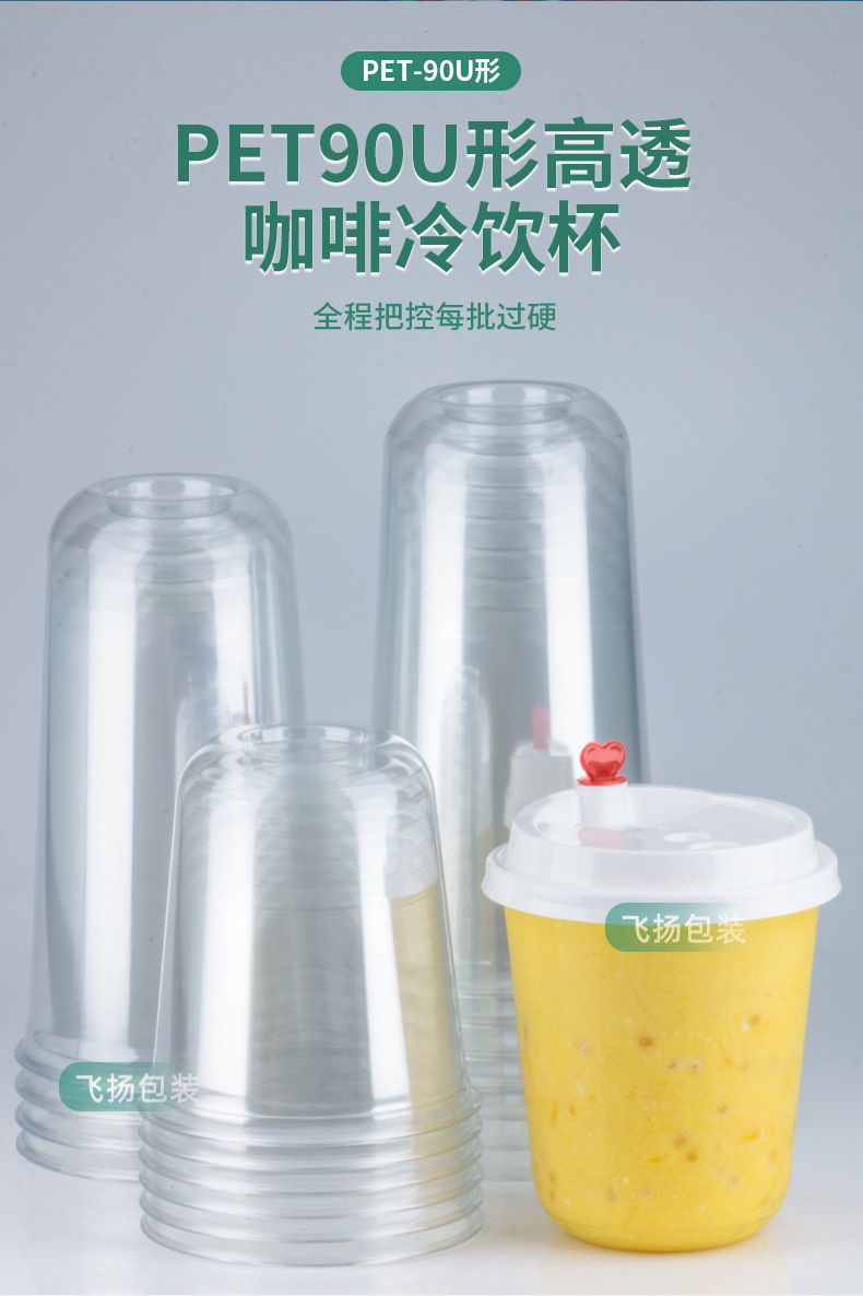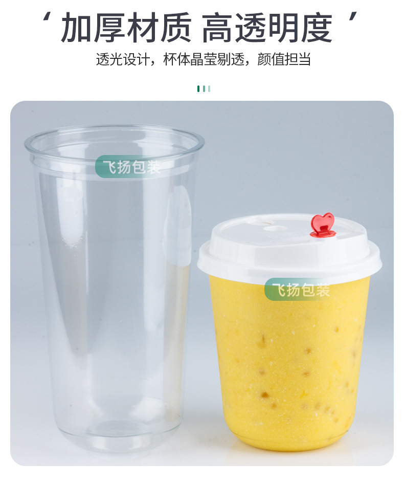 89 calibre taza de té de leche desechable taza de café para mascotas té de frutas Té de limón transparente con tapa bebida fría taza comercial